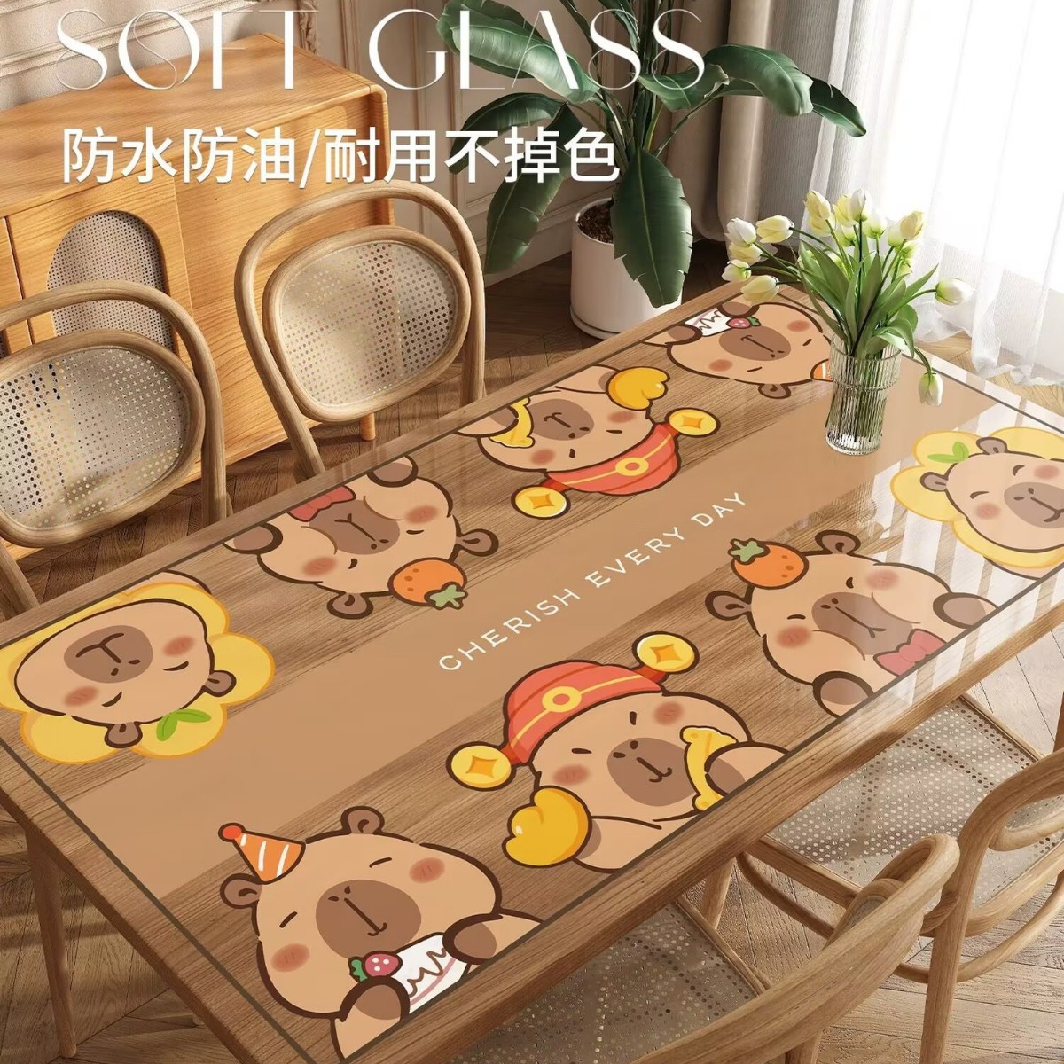 桌布防水防油免洗防烫软玻璃餐桌垫子轻奢感台布茶几桌保护垫卡通