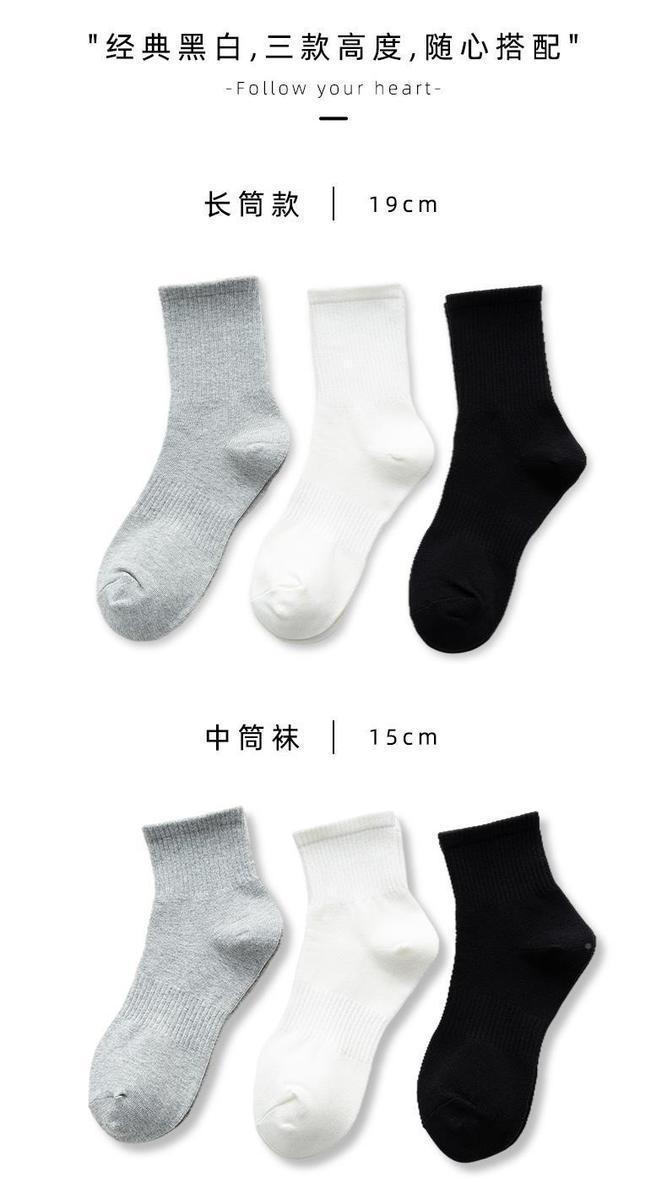 袜子男中筒袜秋冬款双针袜透气吸汗商务运动春夏黑色男士纯色长袜