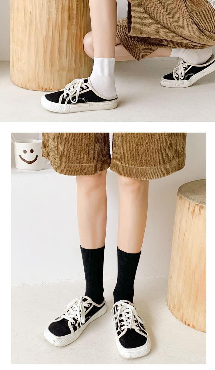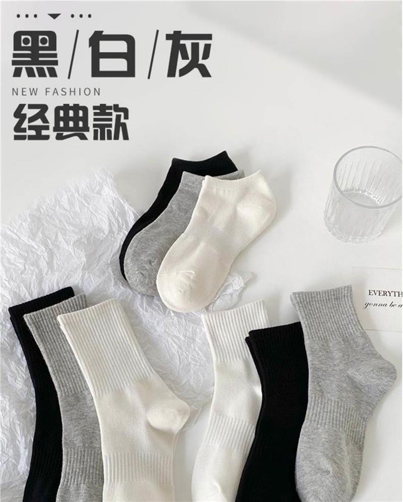 男性と女性のためのソックス、クラシックな黒と白のグレーのストッキング、無地のウエストバンド滑り止めミッドカーフスポーツソックス、多用途のカジュアルで通気性のある綿
