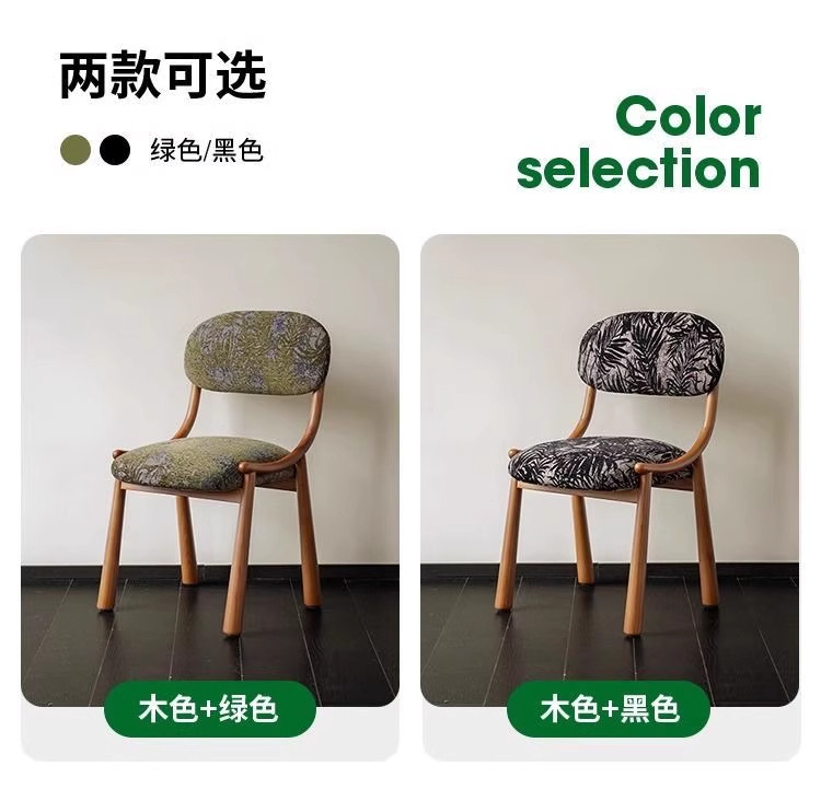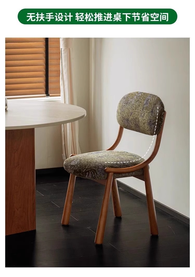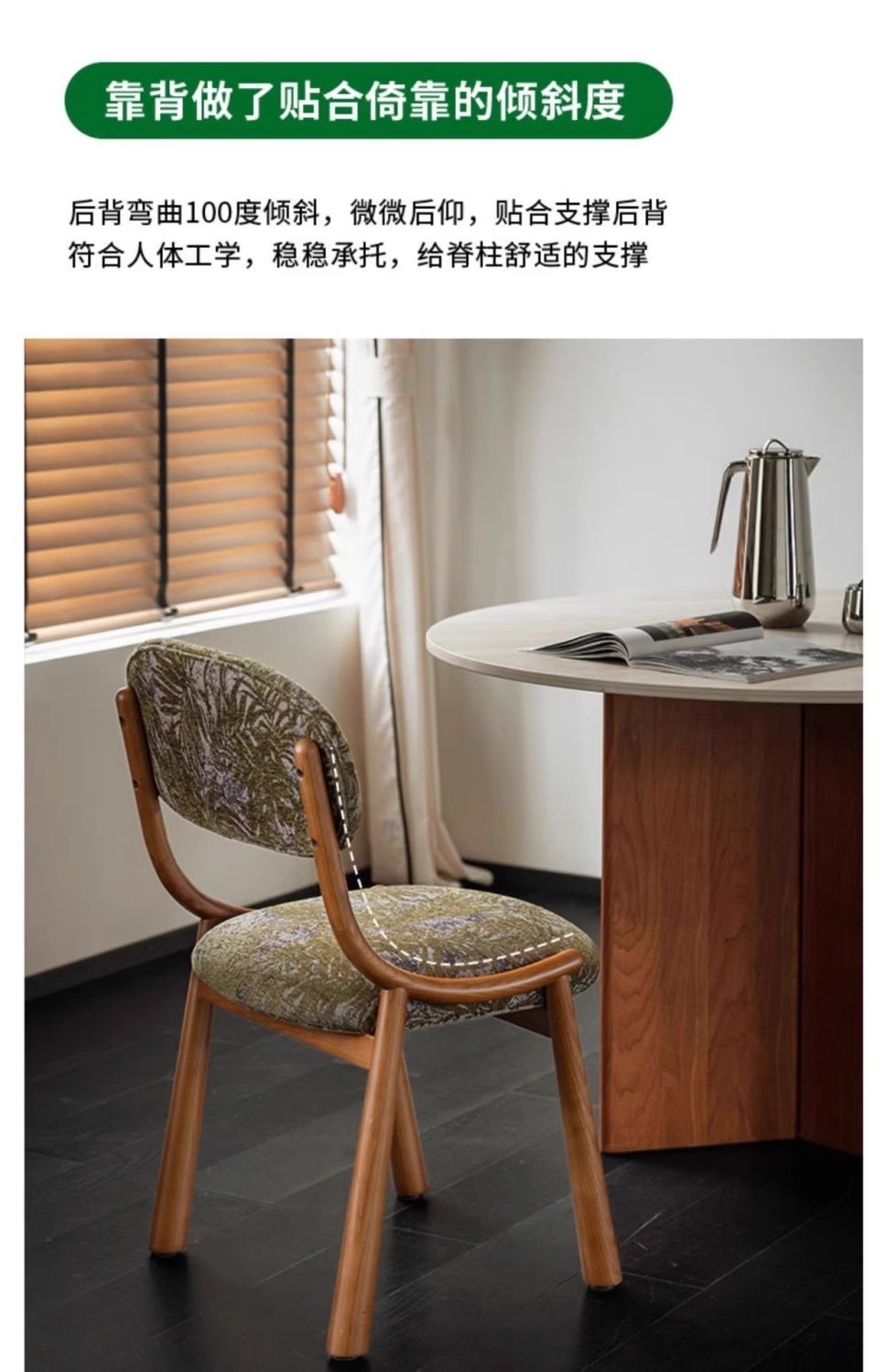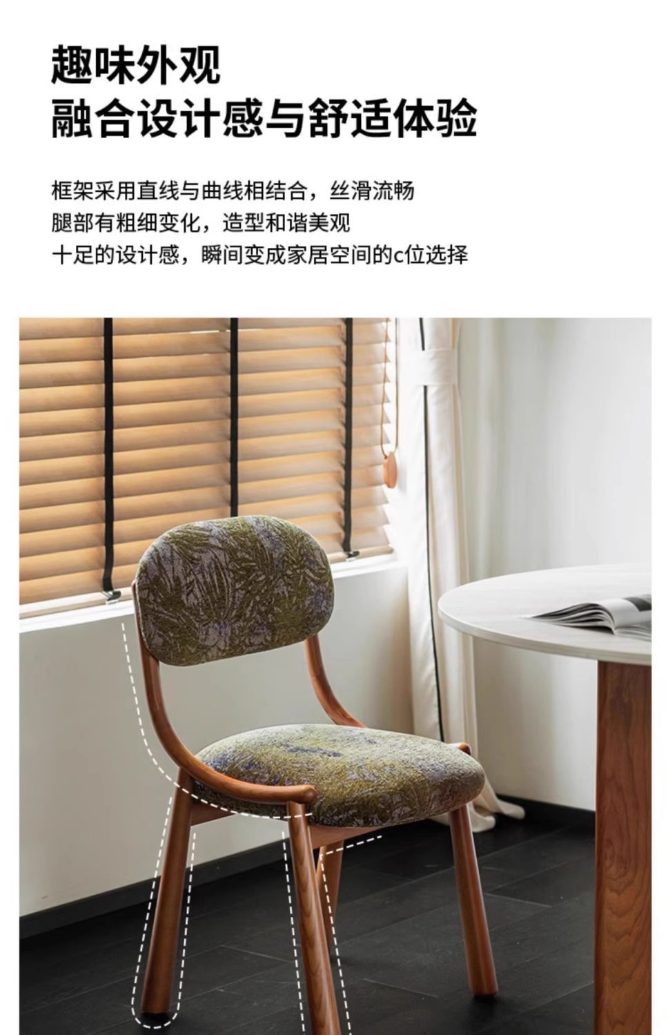 法式中古风餐桌椅小众设计师款实木书房靠背椅家用高级感软包餐椅