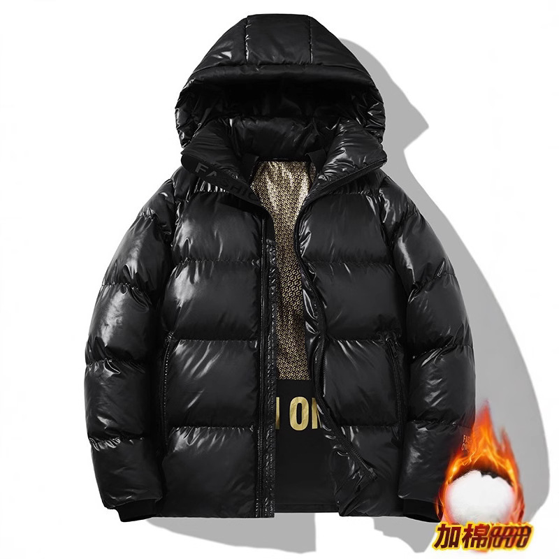 黒い金の綿の服の冬の明るい面の青少年の綿の服の男性の大きいサイズの保温は帽子の綿入れの上着の上着と厚いです。