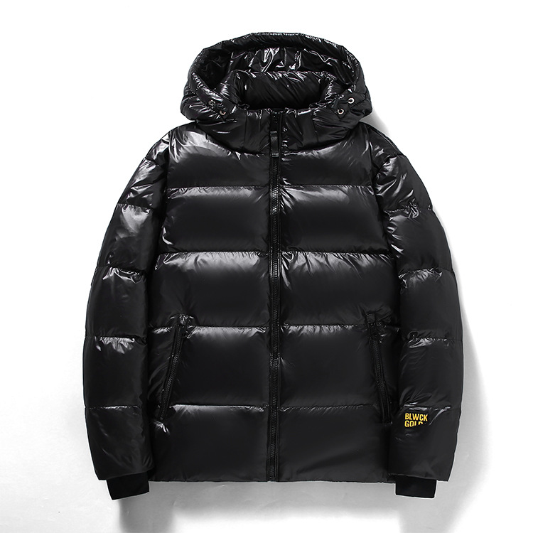 クロスボーダー新しい光沢のある冬服メンズショートユース韓国スタイルスリムフィット軽くて暖かいファッショナブルなフード付きジャケット