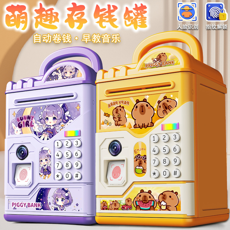 儿童存钱罐玩具电动指纹密码锁大容量只进不出卡通创意ATM储蓄罐