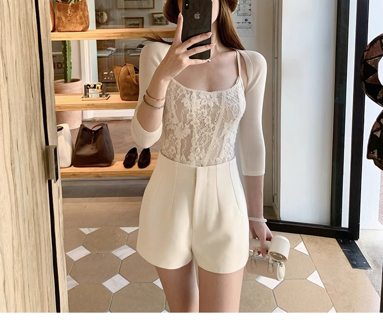 オードリーのコレクションの全シリーズ、オーダーメイドのフェイクツーピースデザインのレースサスペンダートップ、新しいトップスが入荷しました