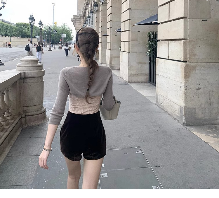 スポットグループのお気に入りウエスト_コミックパンツはベルベットショートパンツを着て、女性がアウターとして着用し、スリムで背が高く見えるパンツ、バドショーツ