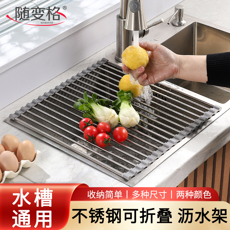 不锈钢折叠沥水架硅胶滤水架卷帘水槽碗筷果蔬收纳架子厨房置物架