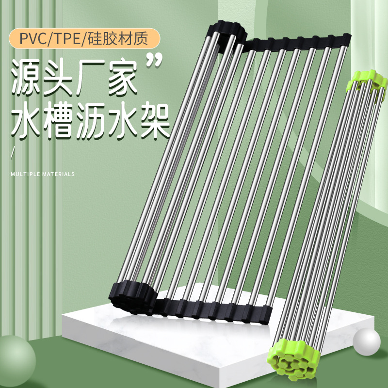 可折叠硅胶厨房水槽沥水架卷帘置物架可卷水池隔热碗筷果蔬滤水架