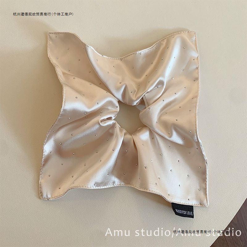 高級ベージュベビーブレスサテンスクエアスカーフ、ヘアゴム、スクエアヘアゴム、ローポニーテールヘアロープ、ヘッドバンド