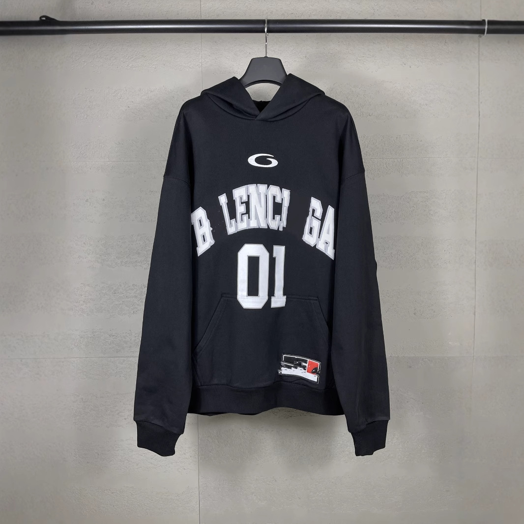 正しいバージョン2025春の新型パリB家アルファベットバスケットボールコート刺繍プリント帽子付きパーカー