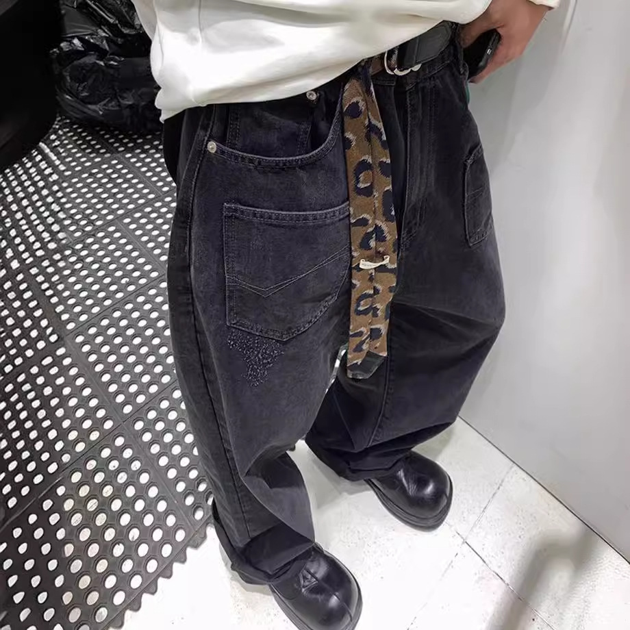 Ac 25ss新款泼墨水洗做旧牛仔裤男女同款宽松长裤