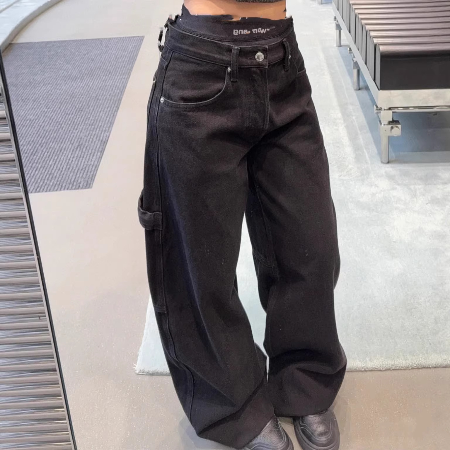 2025早春新款原标AW王家假两件织带百搭显瘦宽松版型工装牛仔裤