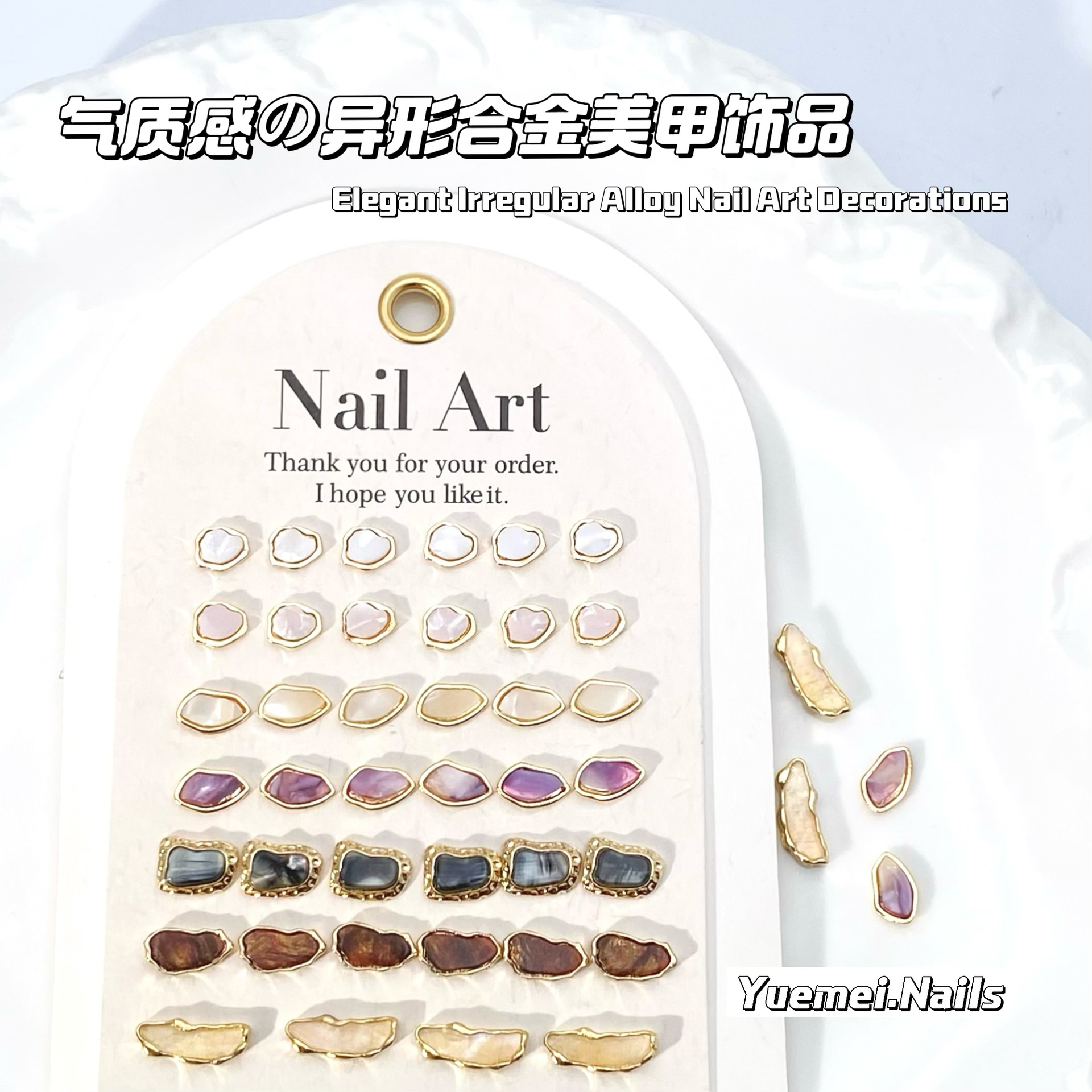 特殊な形の金縁の貝殻ネイルアート合金ジュエリー不規則な混合色中空パッチ日本のライト高級ネイルデコレーション