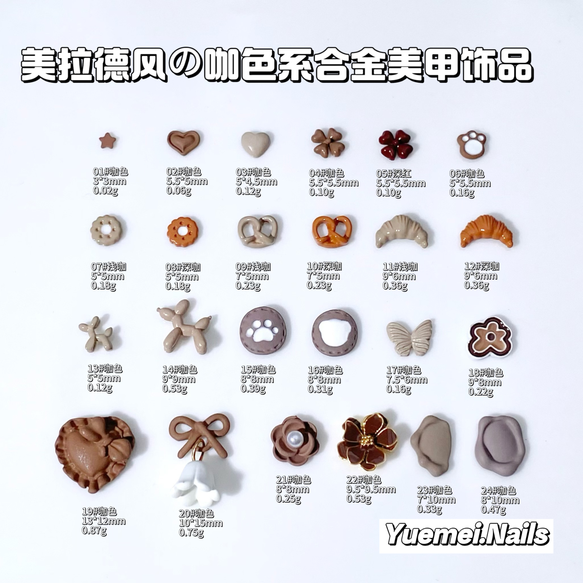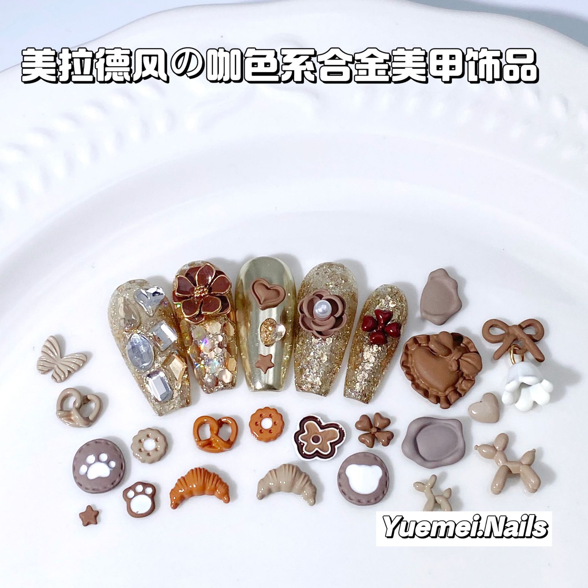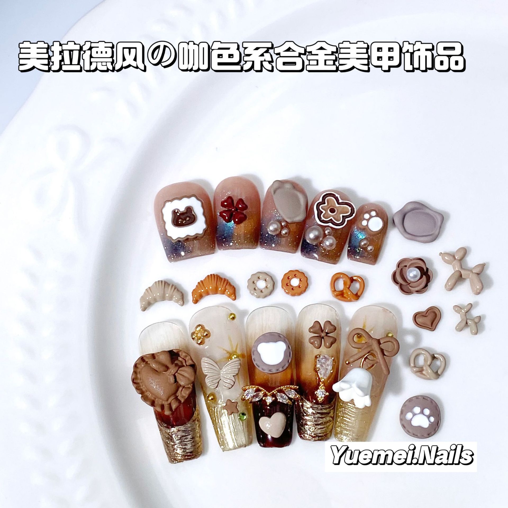 日系美拉德领结爱心合金美甲饰品巧克力猫爪咖棕色星星指甲装饰品
