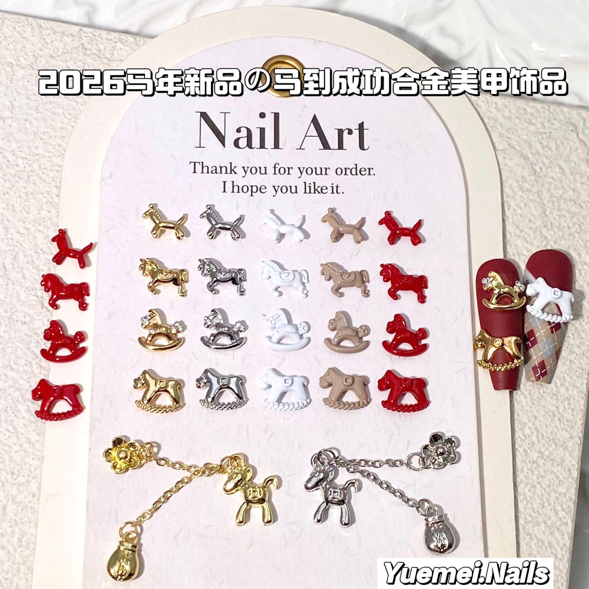 马年新品招财马生肖马合金美甲饰马上有钱指甲穿戴DIY装饰