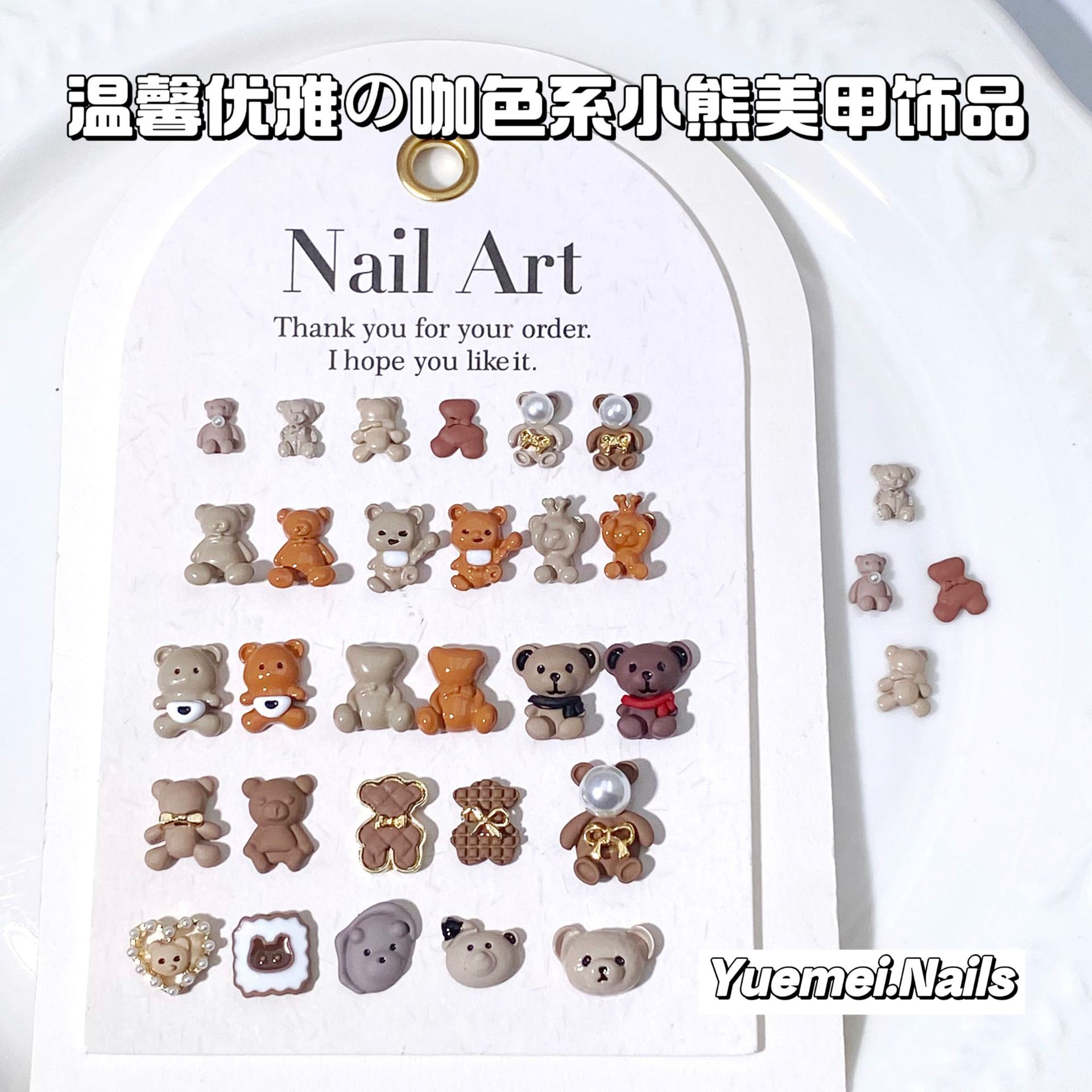 美拉德风卡通小熊米咖茶色系列合金美甲饰品巧克力熊指甲饰品批发