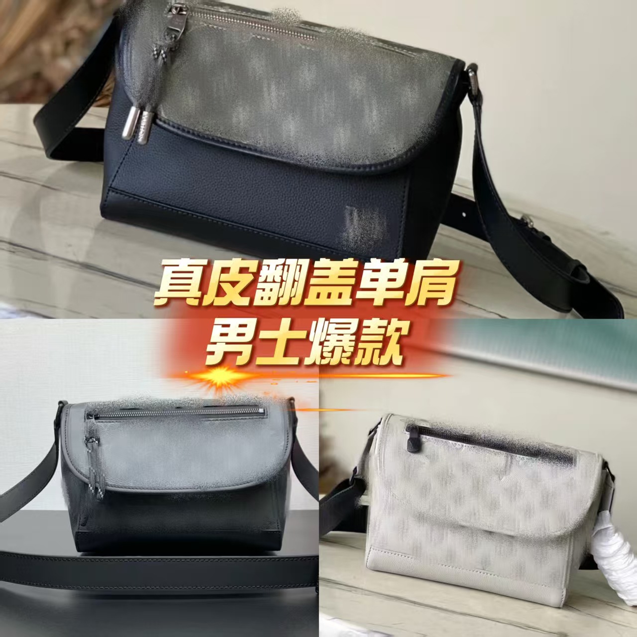 跨境真皮l男包邮差包男士高档黑色斜挎包欧美风出行便捷斜挎包