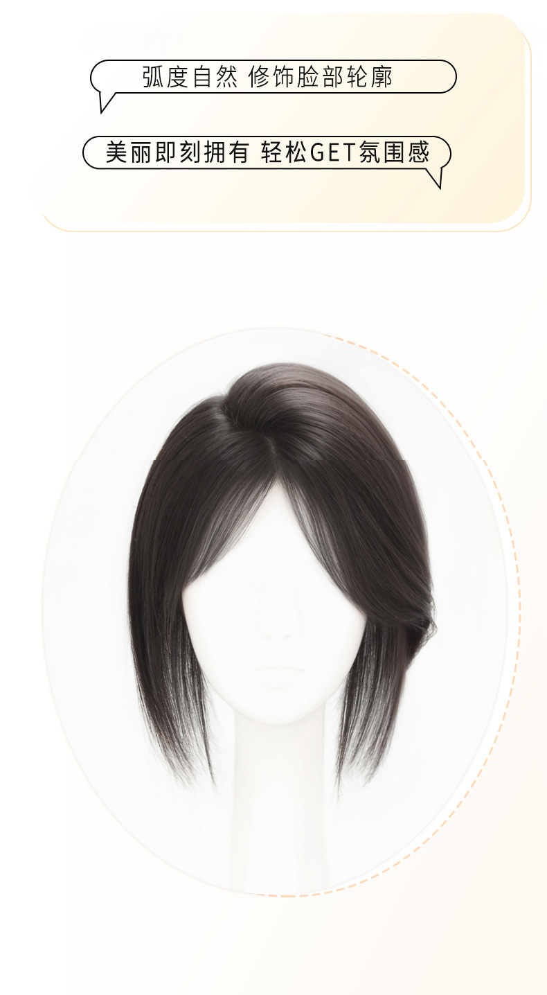 女性用偽前髪、日本の昔ながらの斜め前髪、自然なヘアライン、完全な本物の髪、ふわふわで軽いエア前髪ウィッグ