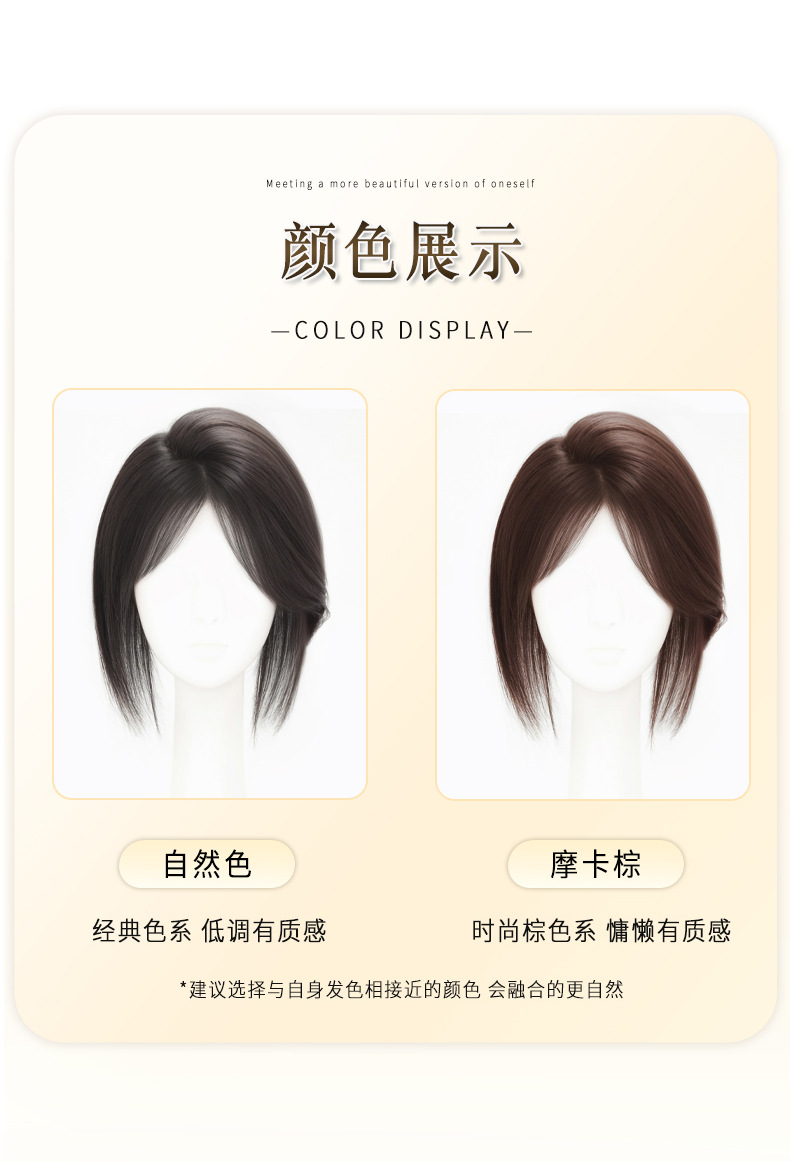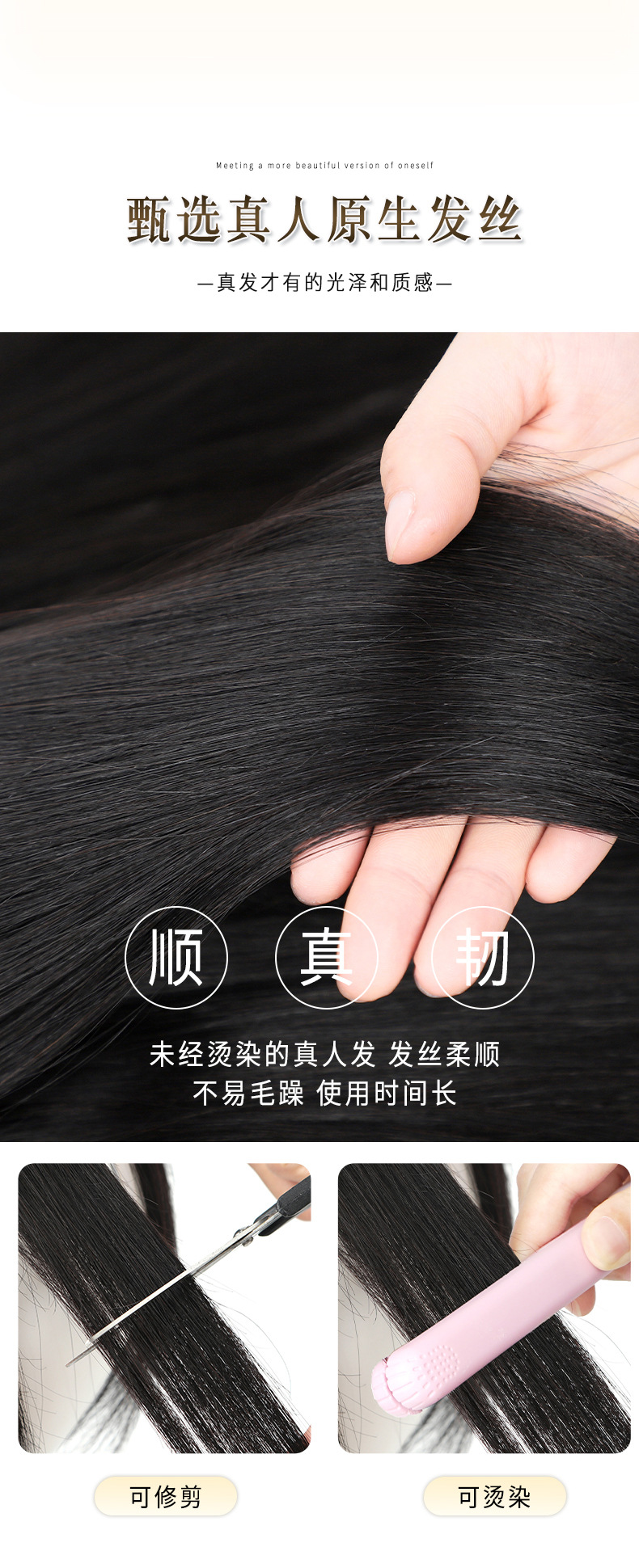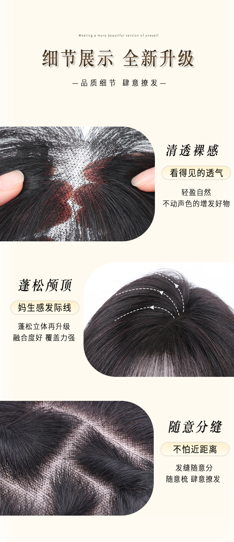 雲の軽いガーゼウィッグ、女性の頭頂部に本物の髪を使用し、ふわふわで髪の量を増やし、白髪をカバーし、軽くて跡が残らない、8の字の前髪を補充します。