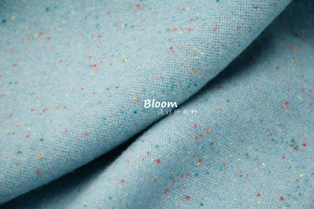繊細なドレープ起毛スカイブルーカラードットガングフラワーウールウール生地秋冬スーツ漢服生地