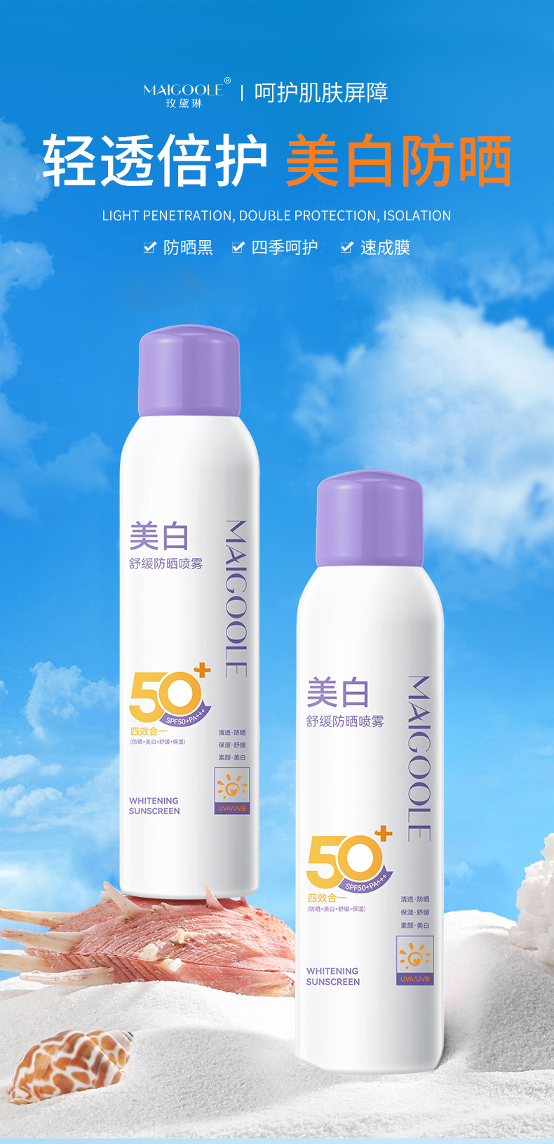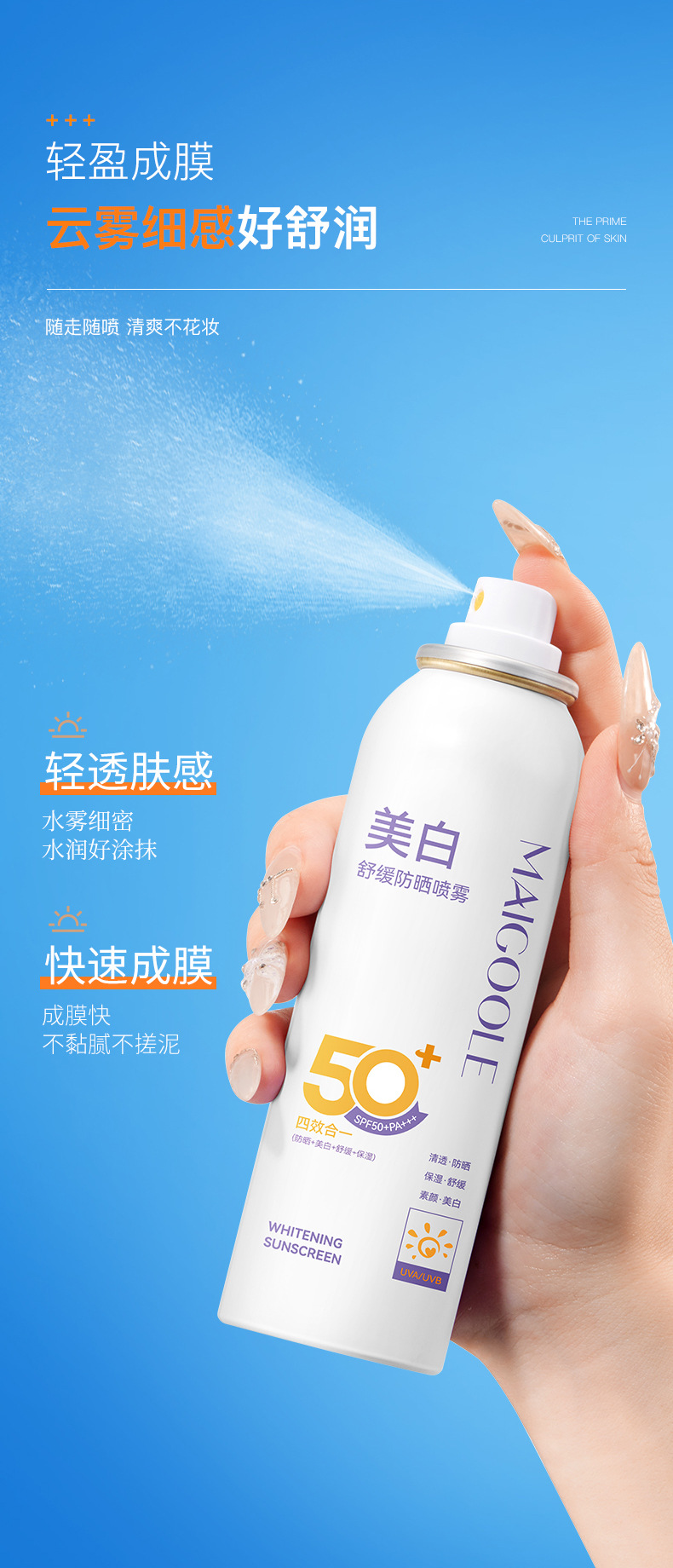 麦米琪日焼け止めスプレーは飛行機に乗って急速に膜を作ることができます。