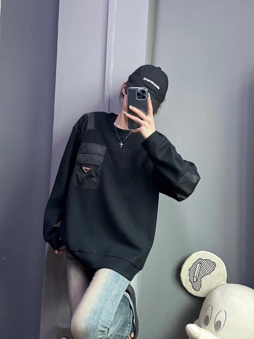 高版本普家套头卫衣2025新款金属三角标装饰休闲P家长袖卫衣外套