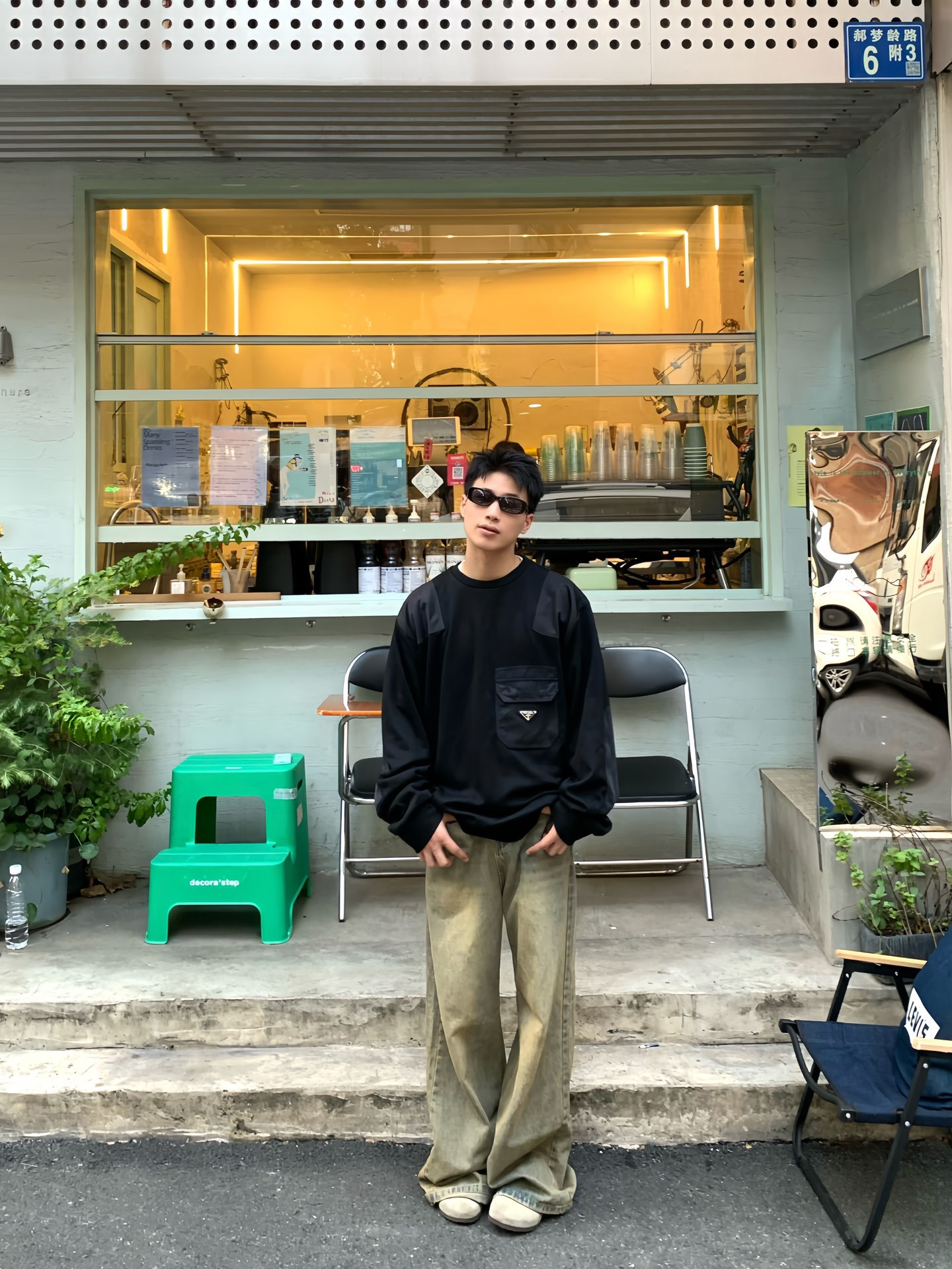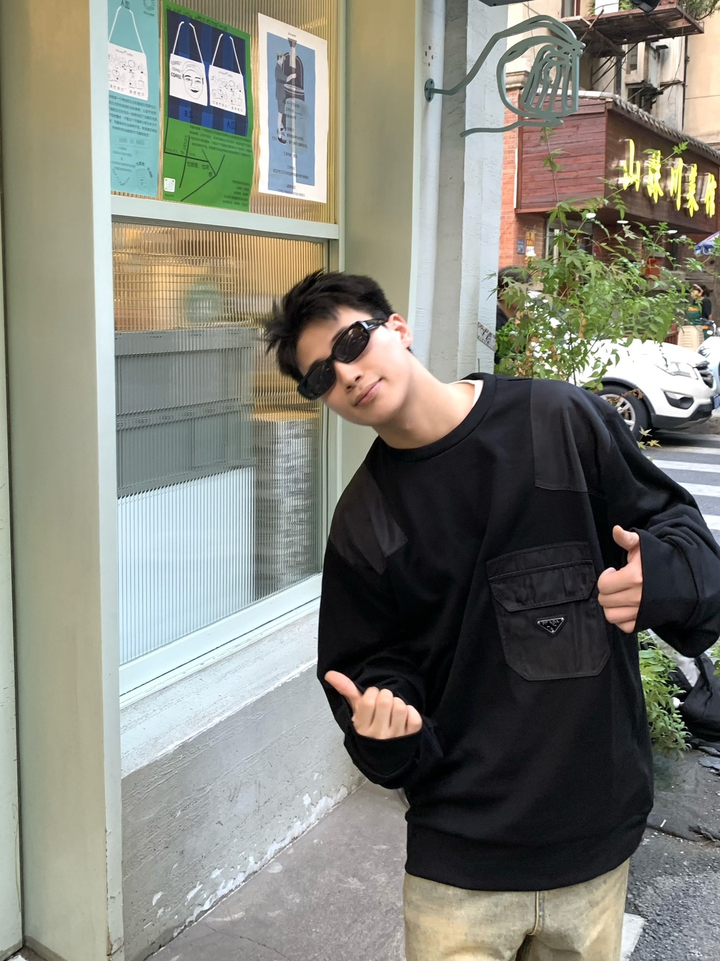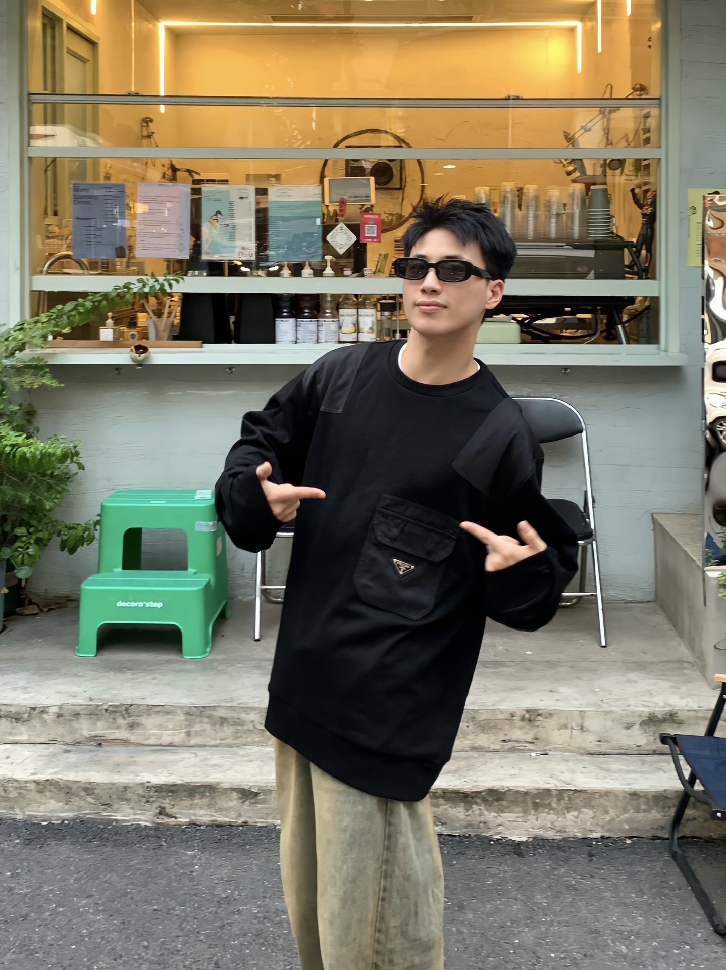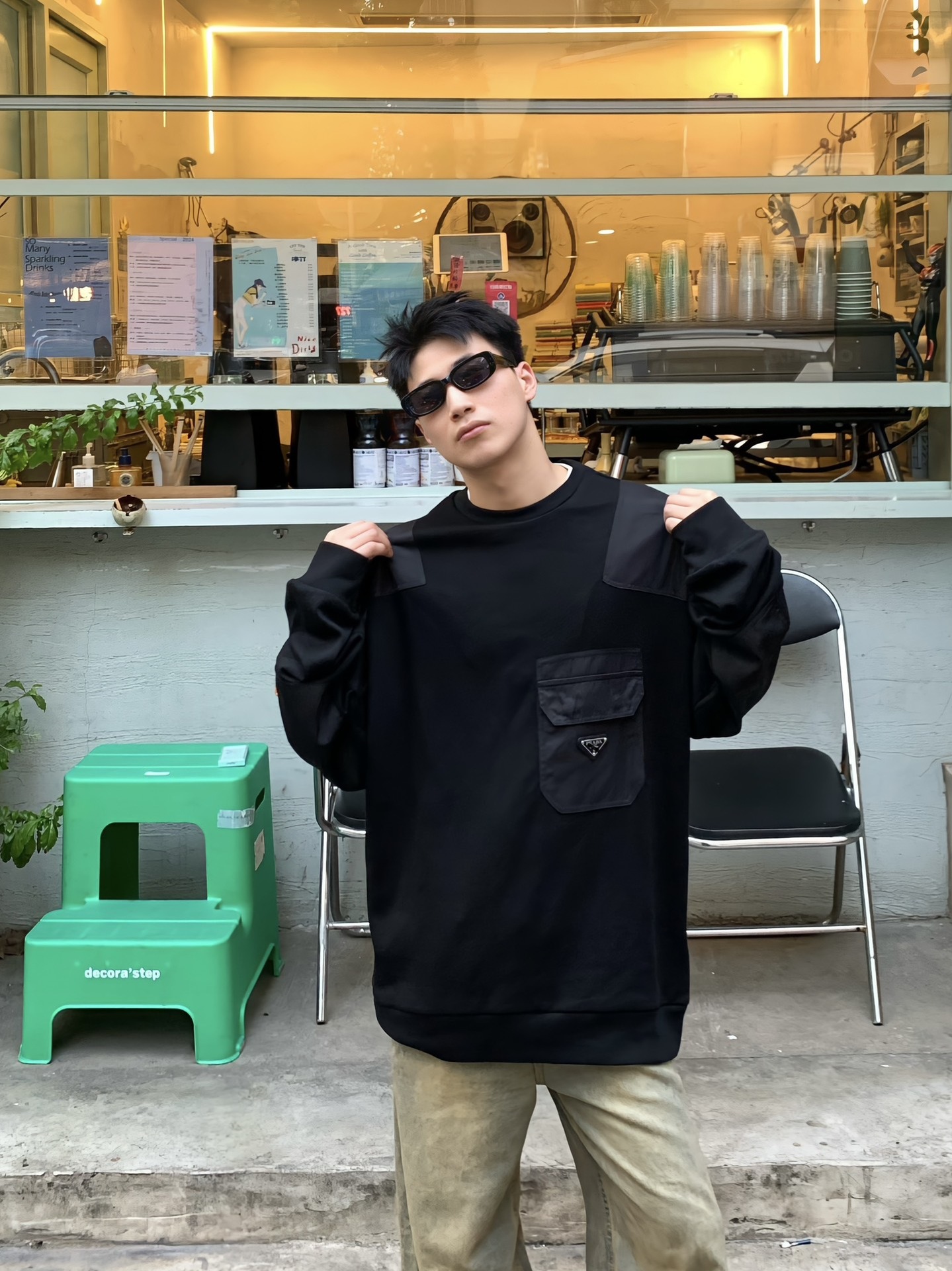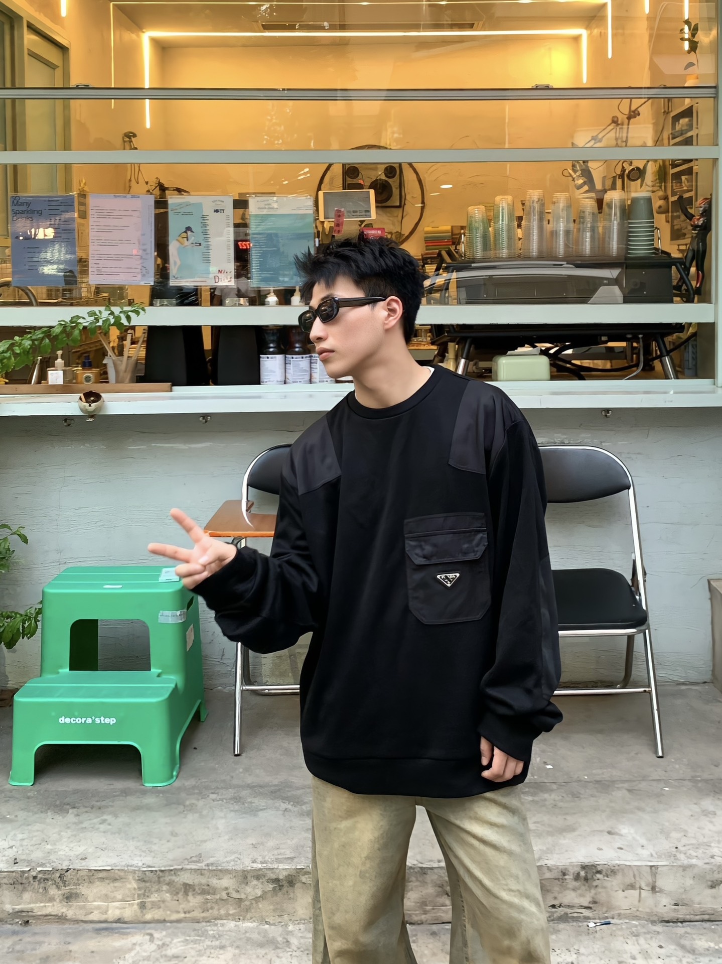天花板品质25SS 潮牌新款P家三角标尼龙卫衣男女同款圆领宽松卫衣