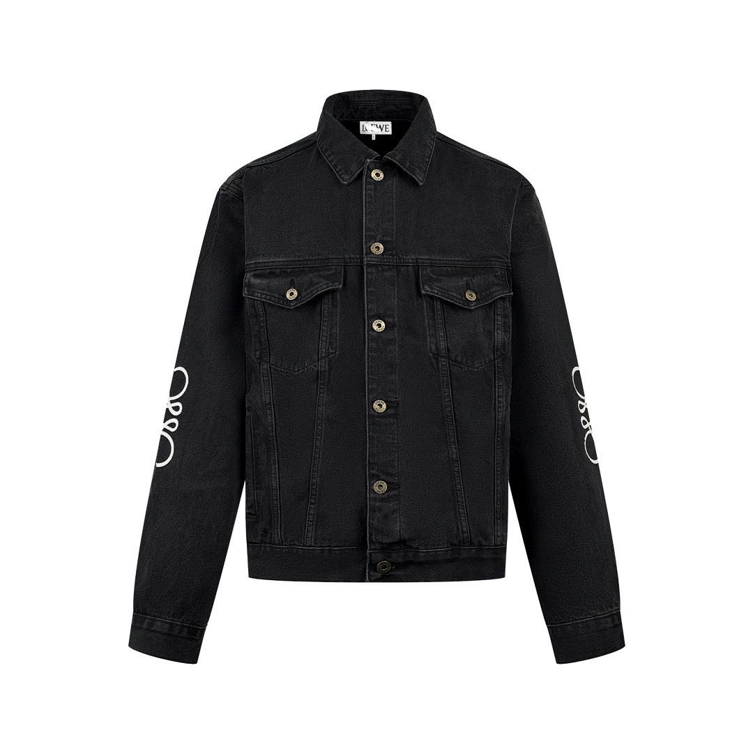 正しい高バージョン Loew 新しいアームロゴプリントトレンディなデニムジャケット男性と女性のためのルーズジャケット