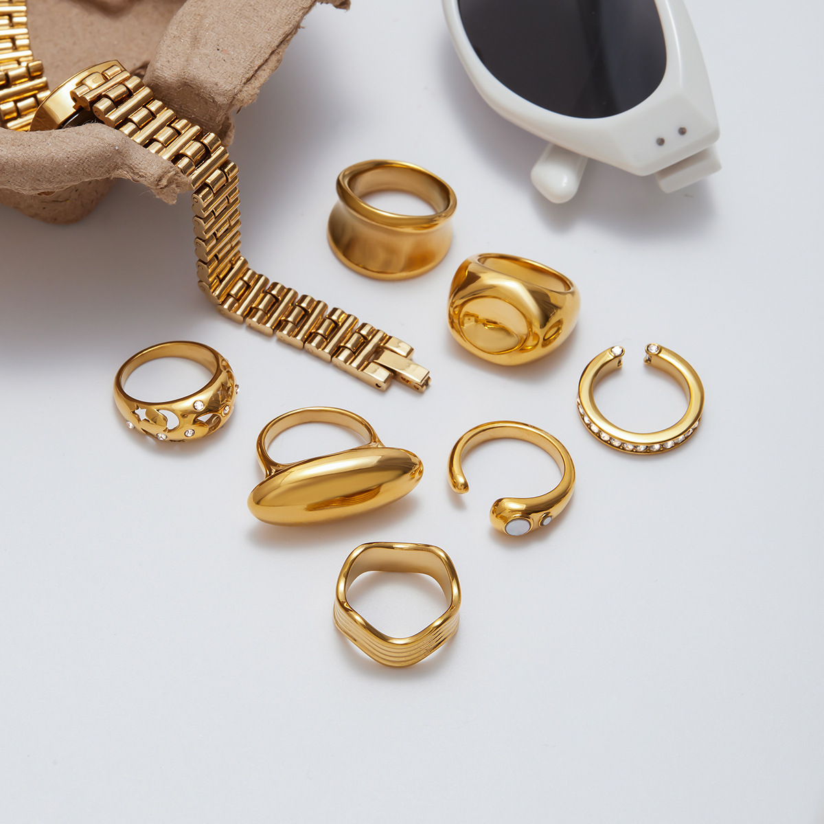 【厳選】ジュエリー ヨーロッパとアメリカのレトロなステンレススチール宝石リング 18K ゴールドメッキリングジュエリーリング女性用