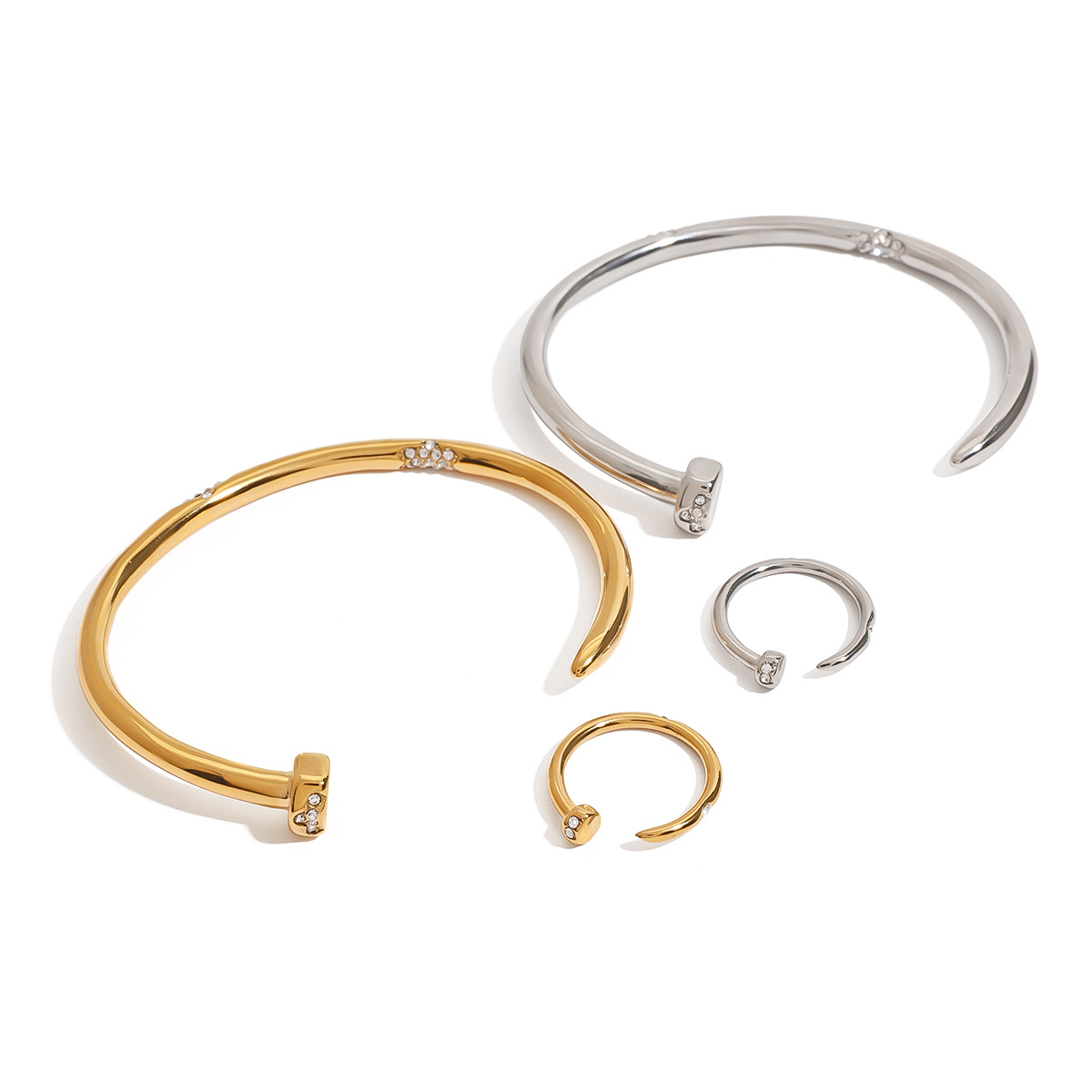 静かで美しい欧米のステンレスの幾何学の指輪の18kの金のステンレスはドリルの釘の腕輪のステンレスの装飾品の卸売りを入れます。