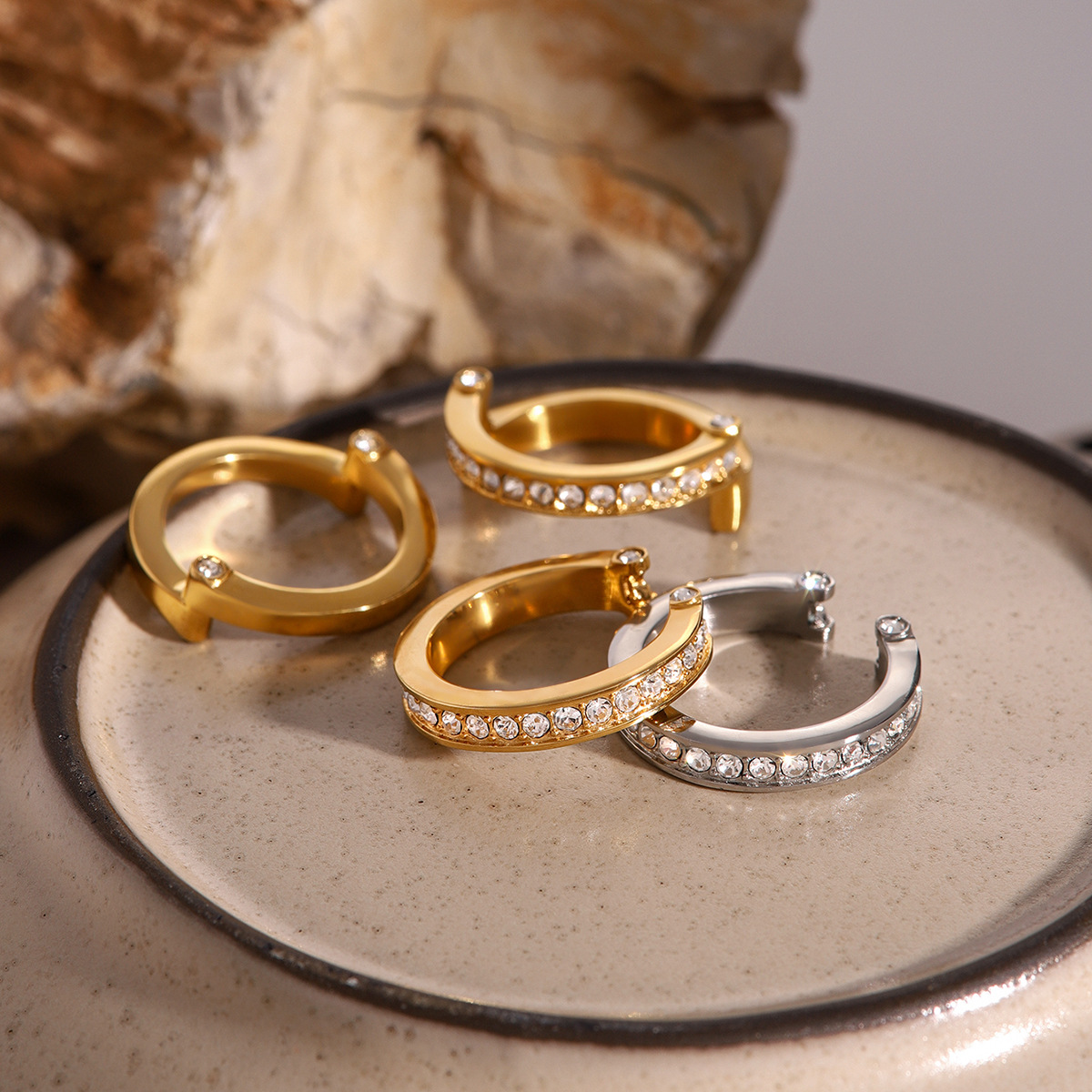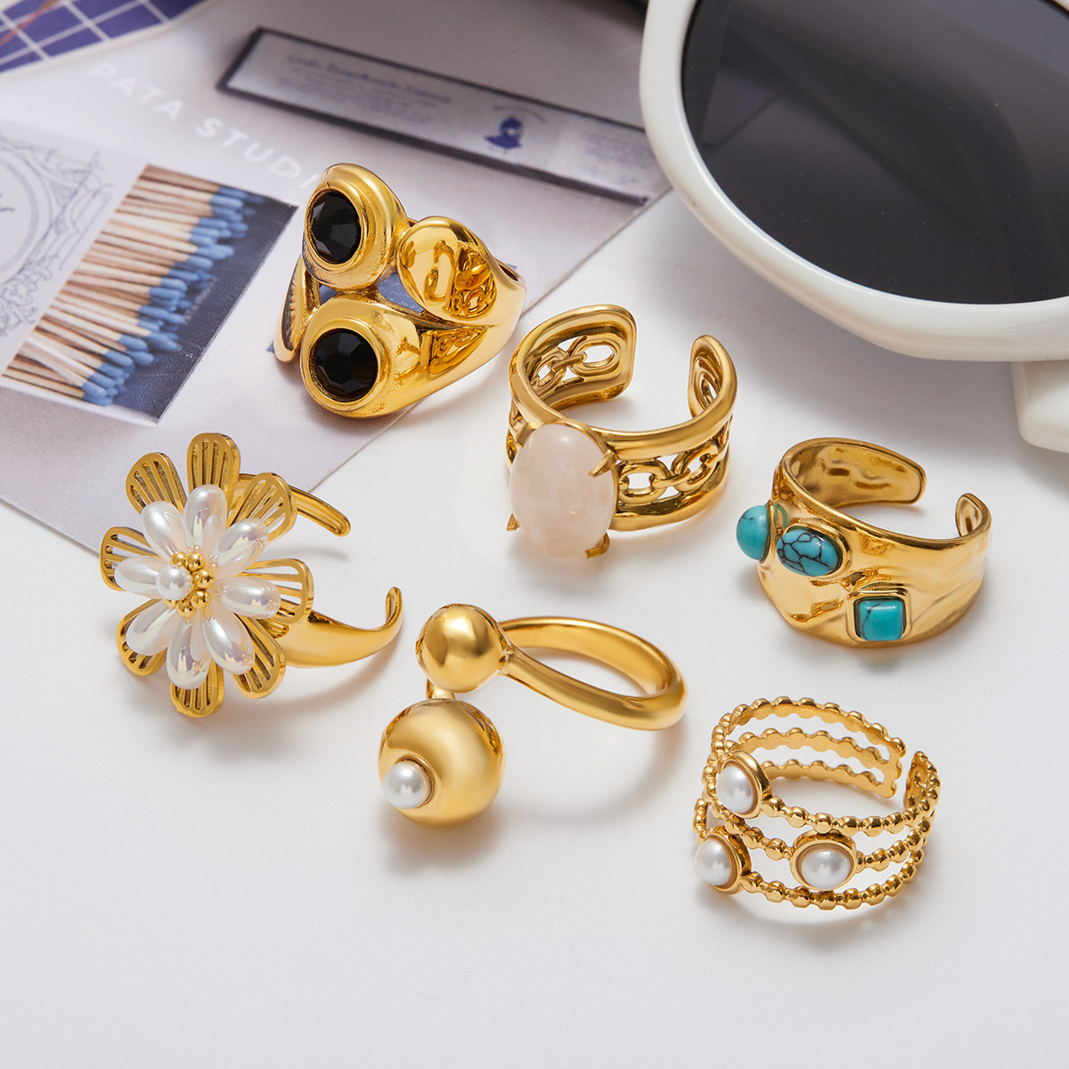 静俏欧美天然石戒指钛钢不掉色首饰跨境爆款ring不锈钢饰品高级感