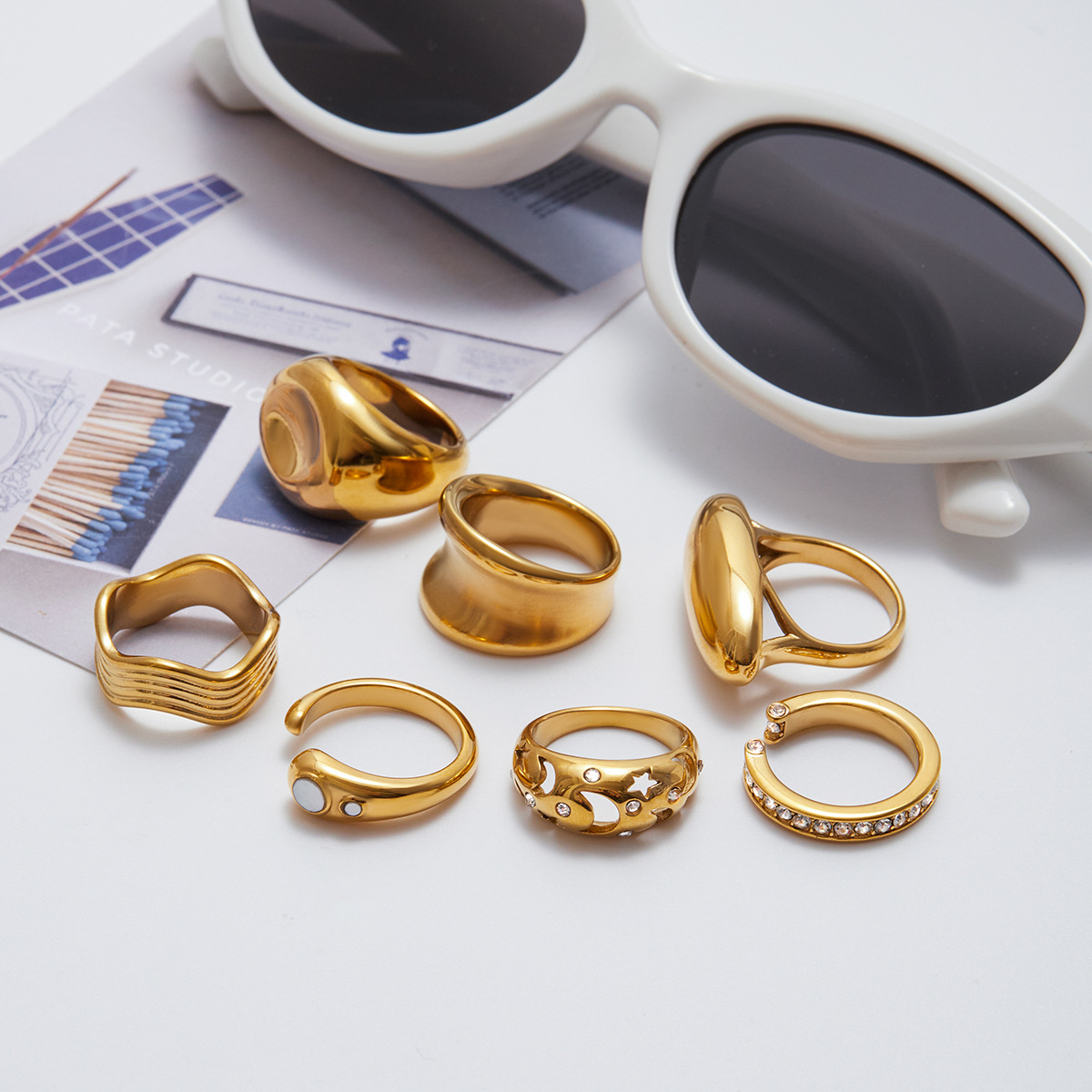 静俏跨境INS风白色锆石不锈钢戒指简约精致设计感手饰饰品不掉色