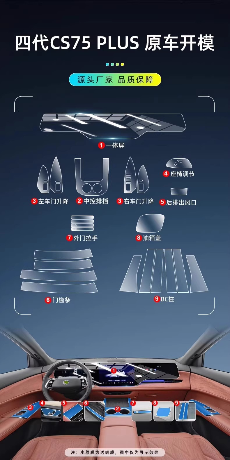 20-25款长安CS75 PLUS专用屏幕中控台排挡内饰车贴改装配件保护膜
