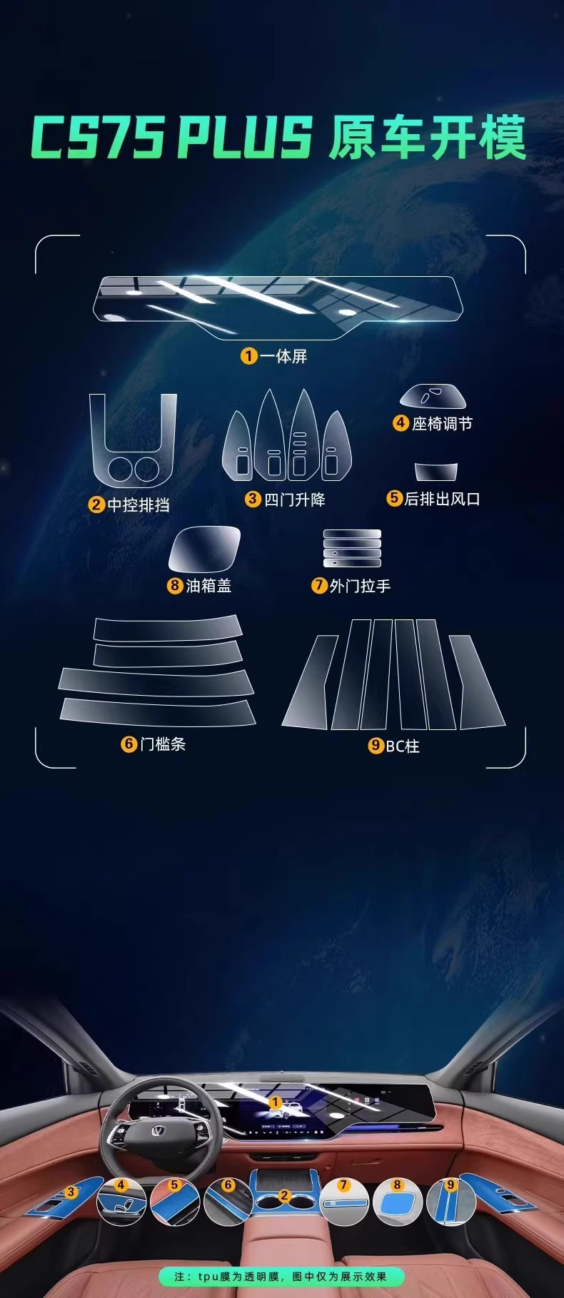 長安四代目 cs75plus インテリアフィルム、中央制御スクリーン強化フィルム、ウルトラカー用品に適した 25 個