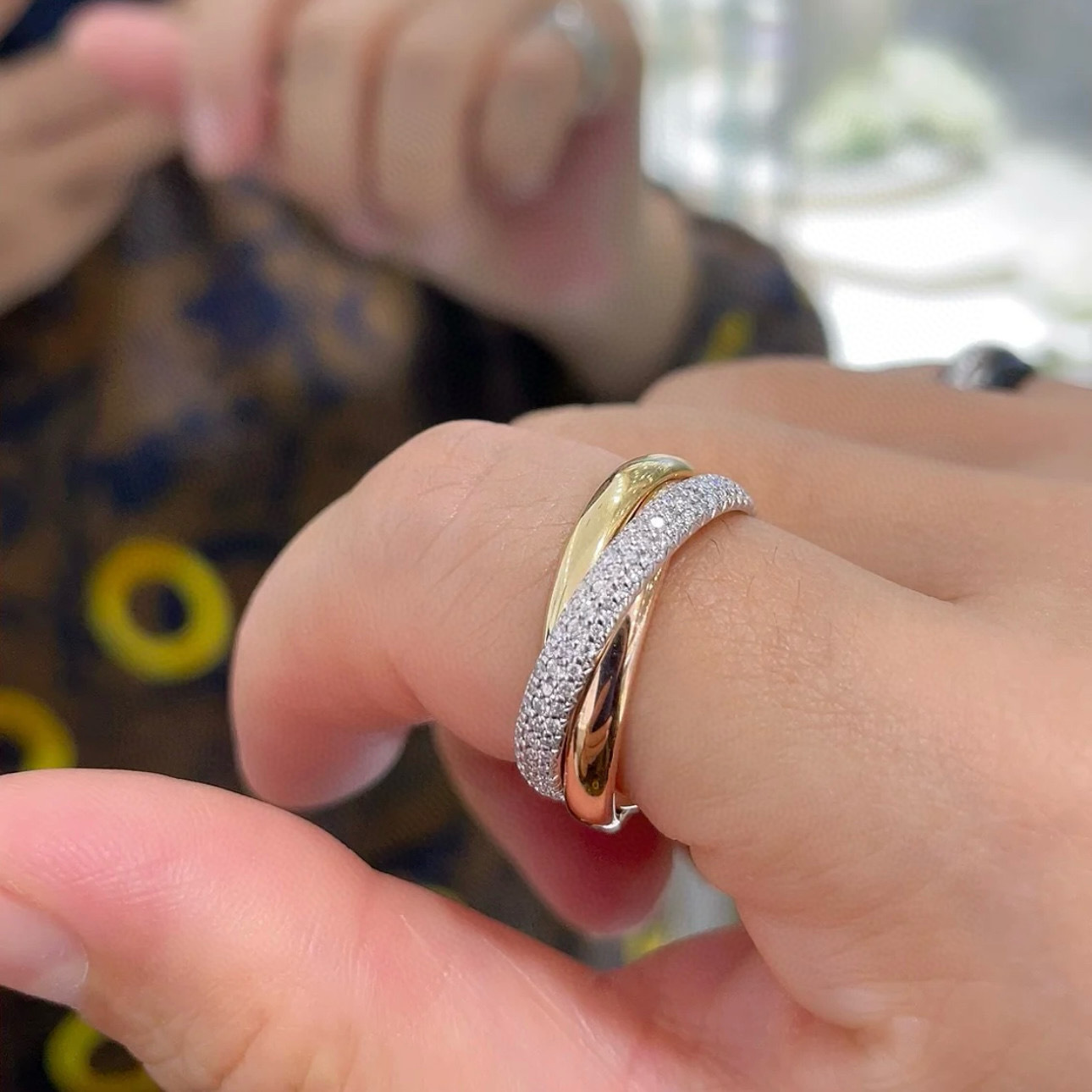 S925纯银 三色三圈戒指轻奢三金简约排钻单圈钻高级感经典