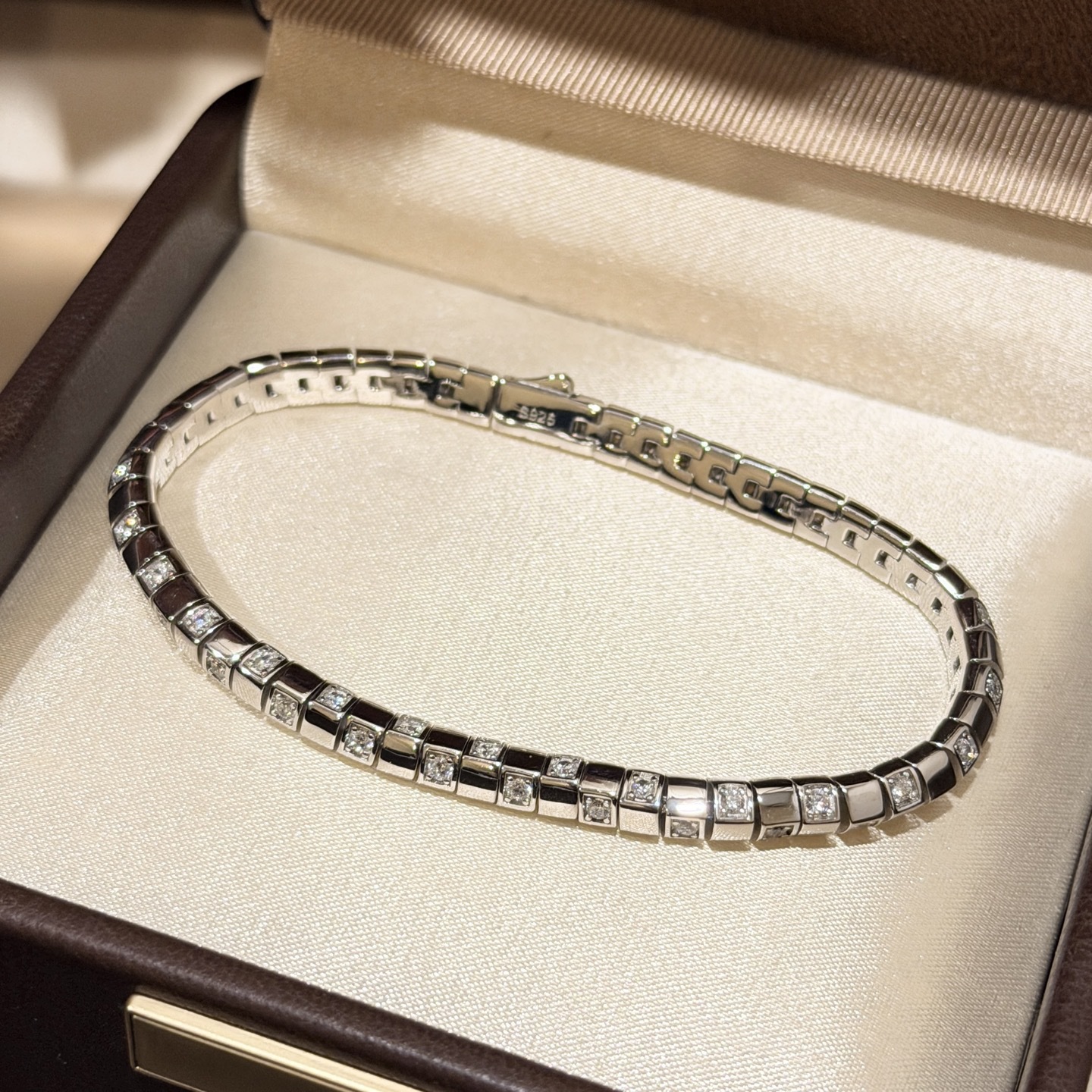 S925纯银精工高级感卡扣间钻棋盘格手链轻奢百搭手饰女无logo