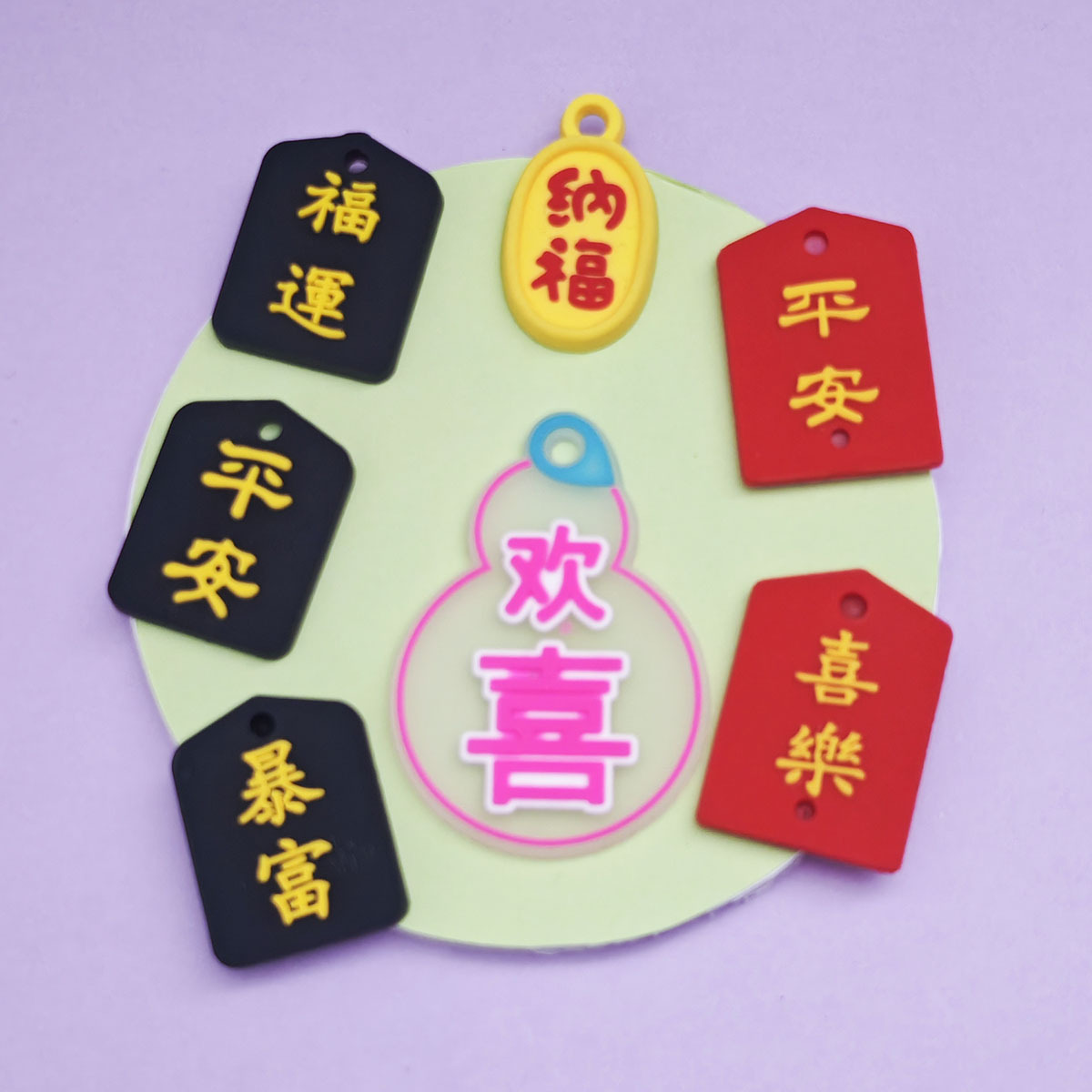 新年元素福字字牌pvc软胶贴片diy钥匙扣挂件手机壳冰箱贴装饰配件