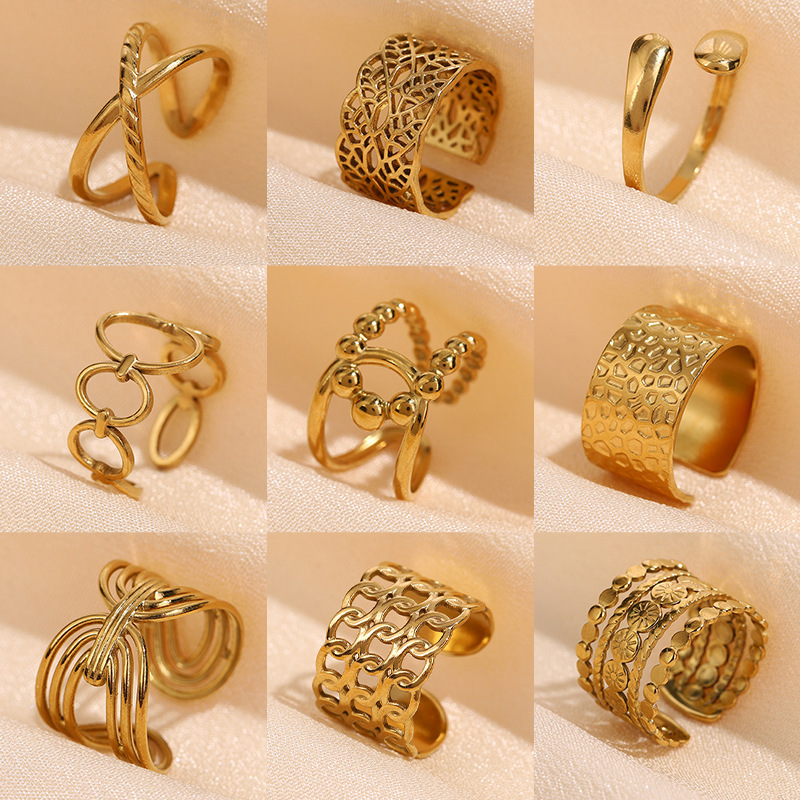 ヨーロッパとアメリカのニッチデザイン幾何学的な不規則な液体オープンリング女性のステンレス鋼リングクロスボーダージュエリー卸売