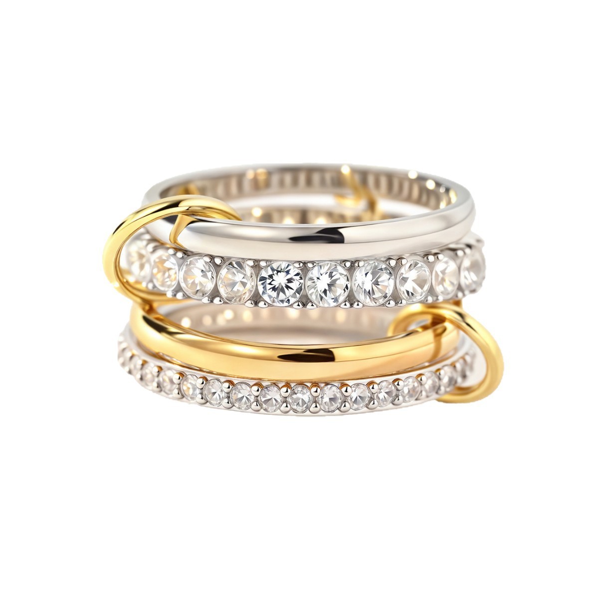 亚马逊环环相扣叠戴多层不锈钢戒指欧美跨境饰品铜锆石相间手首饰