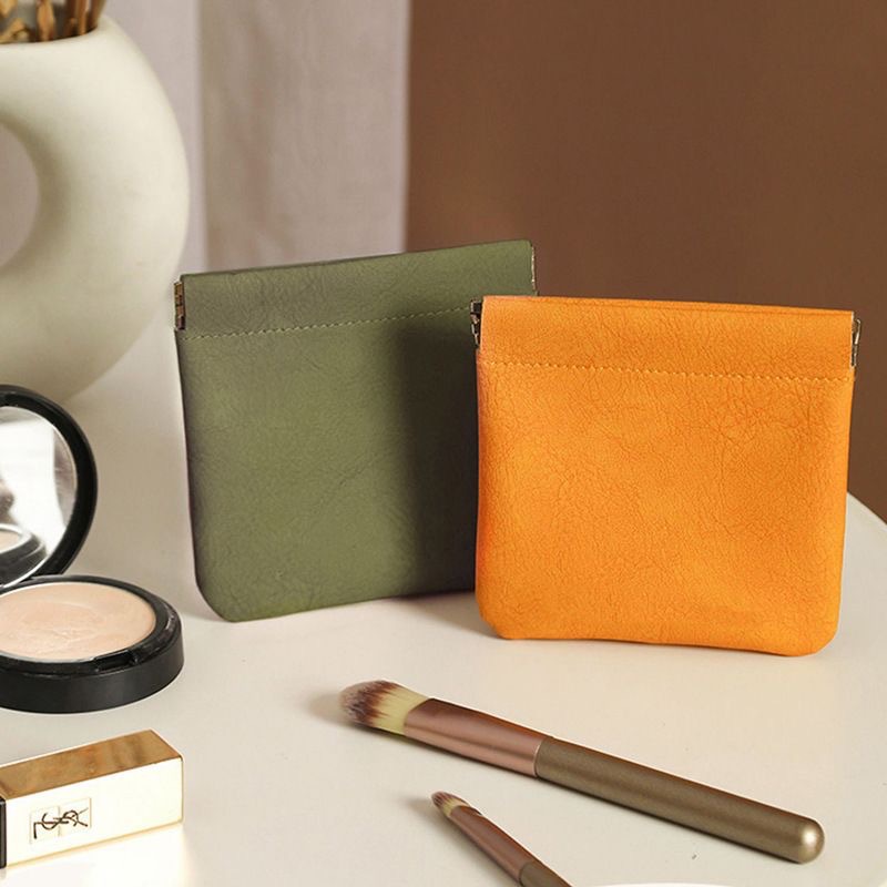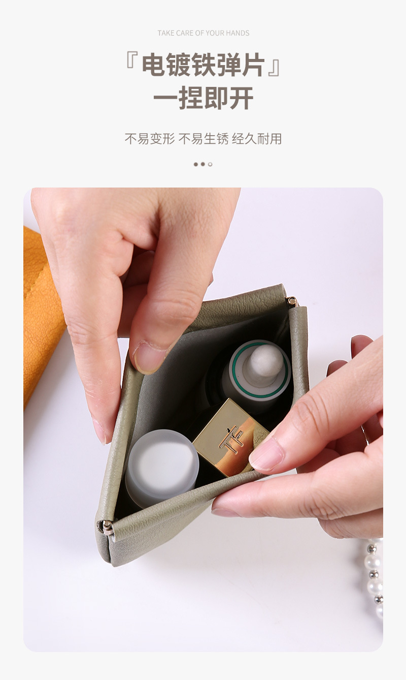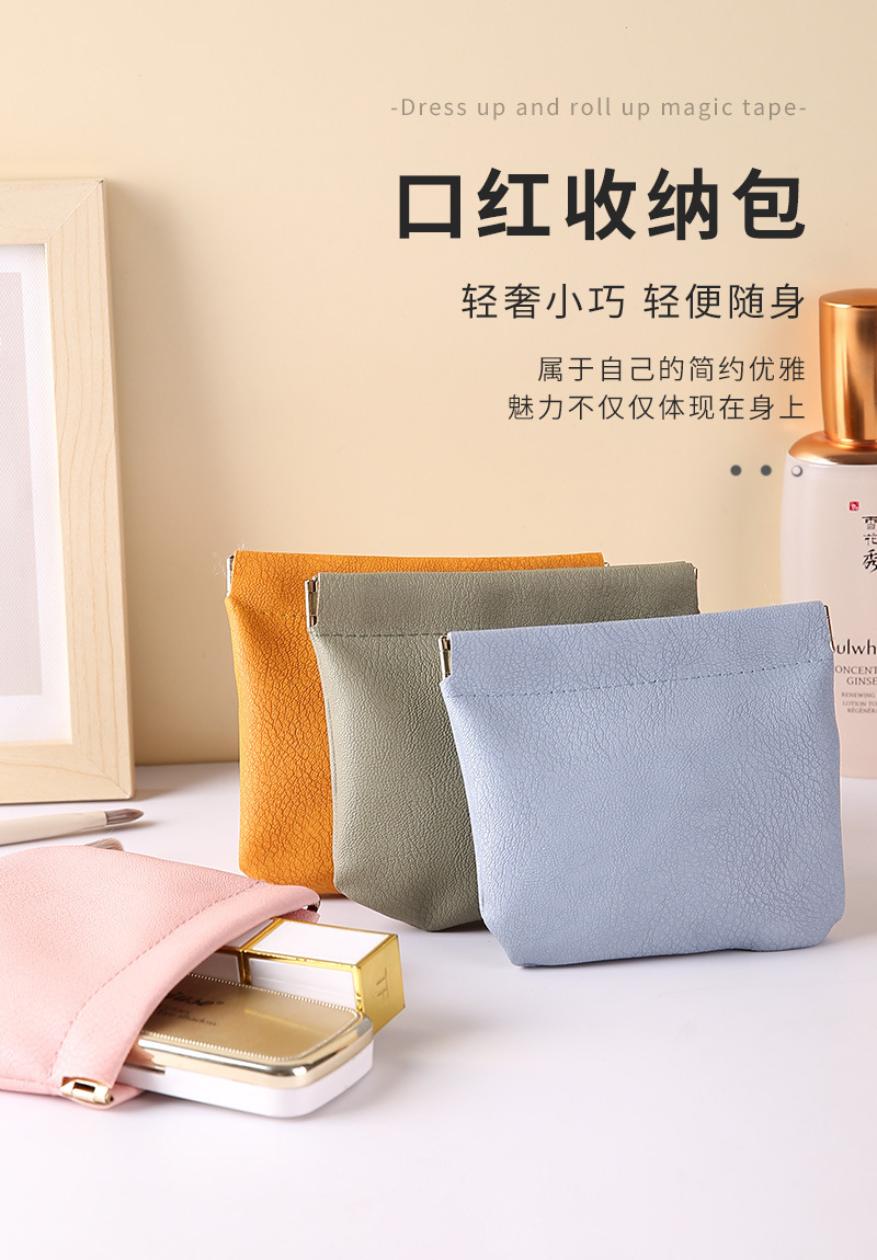 皮质弹片收纳包便携口红耳机钥匙收纳袋随身带化妆品旅行收纳包