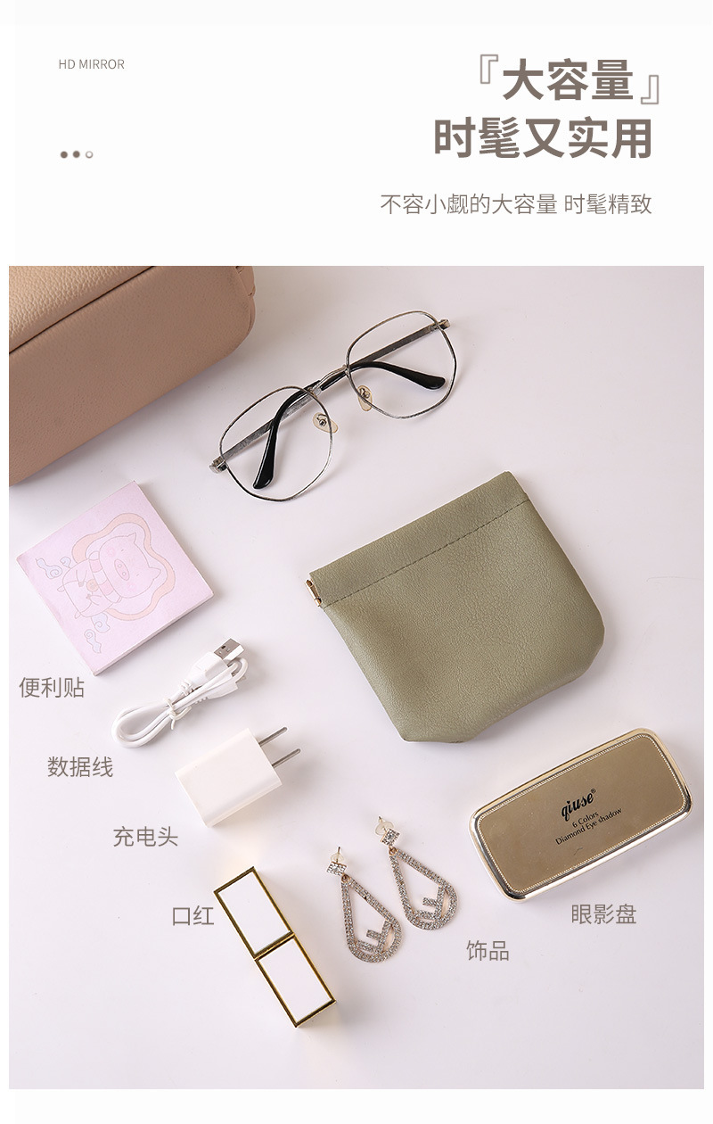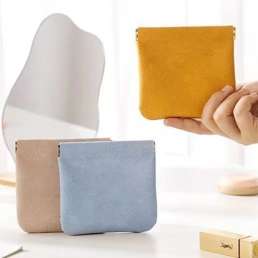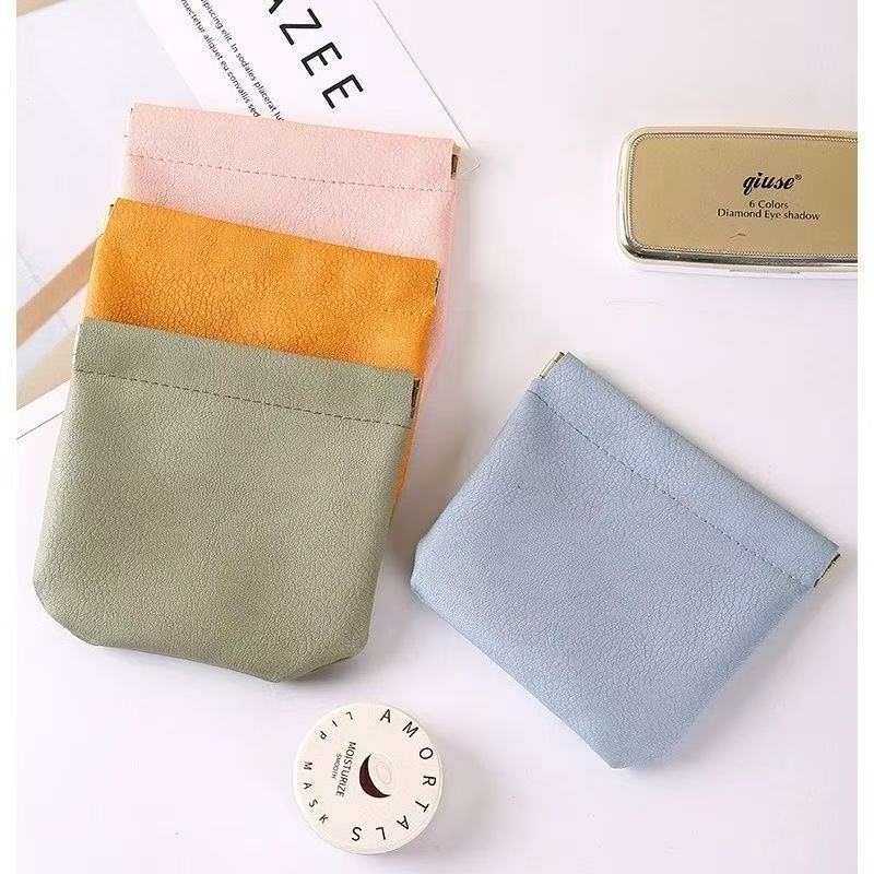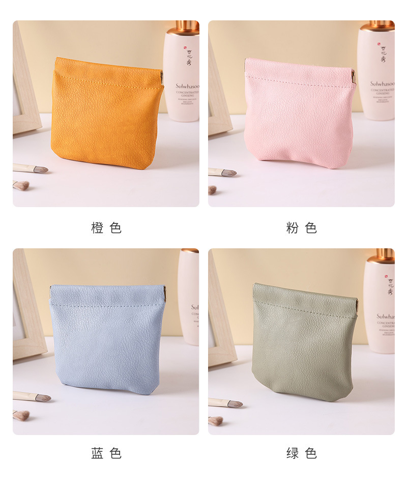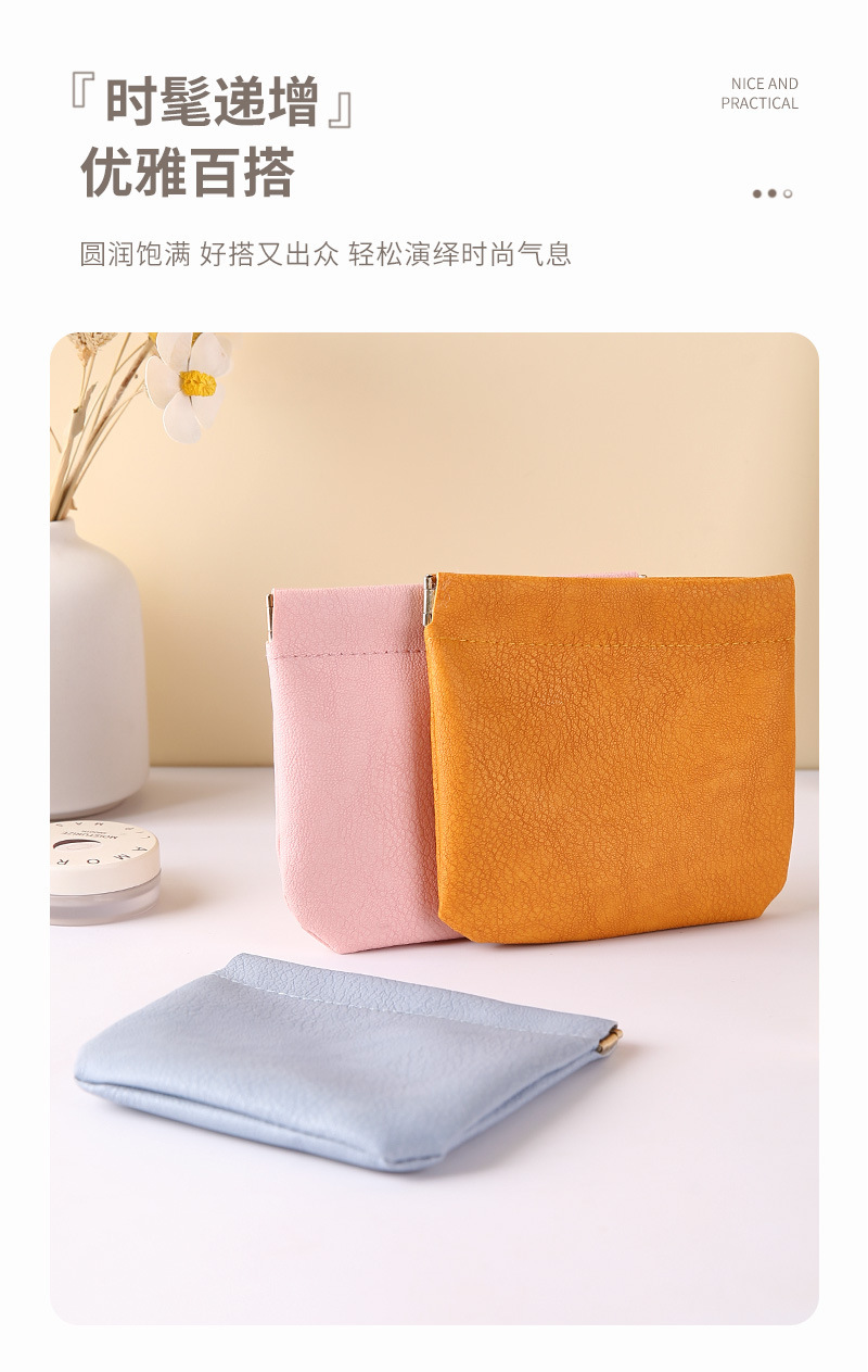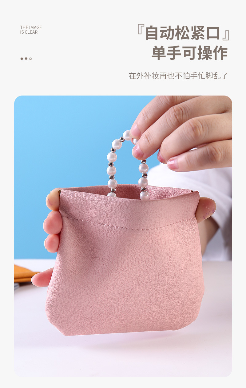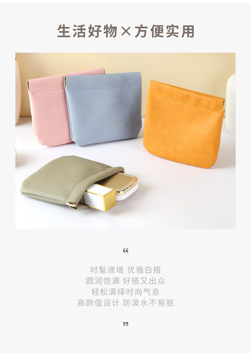 弹片收纳包自动闭合耳机收纳袋便携pu硬币包零钱包口红化妆眼镜包