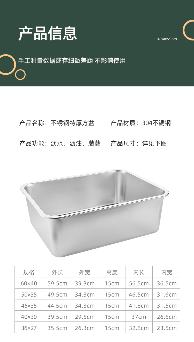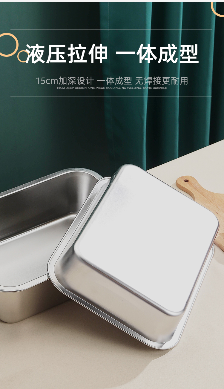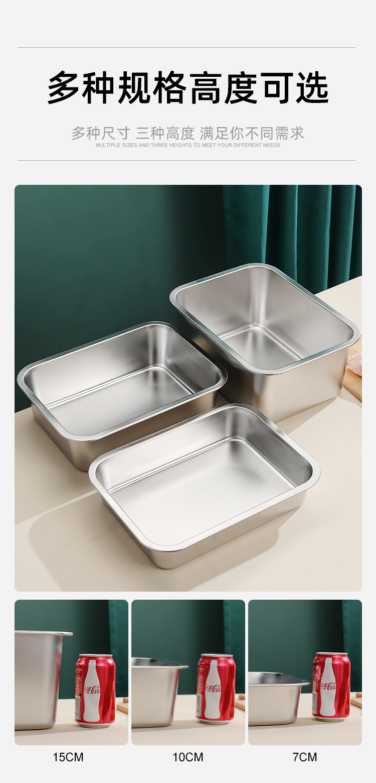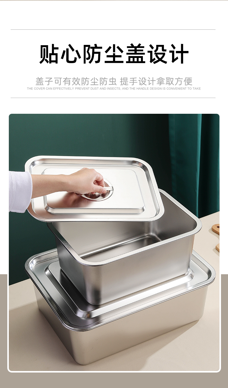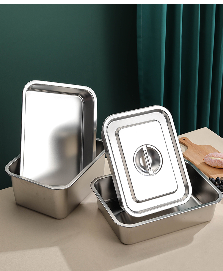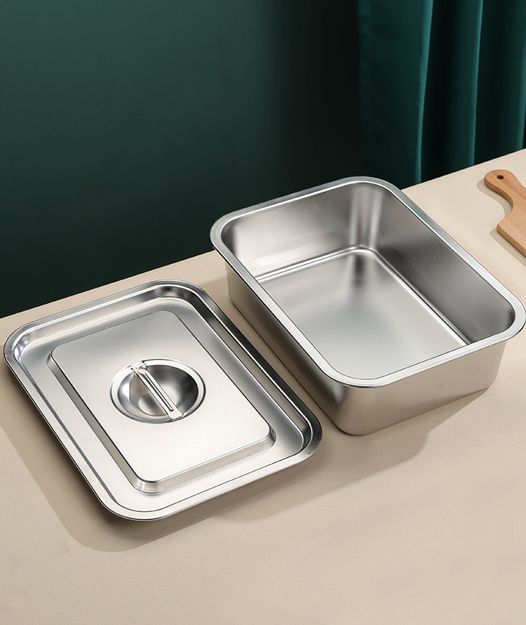 極厚304ステンレス製蓋付き洗面器、業務用角型洗面器、ファーストフード特大箱、深型家庭用洗面器
