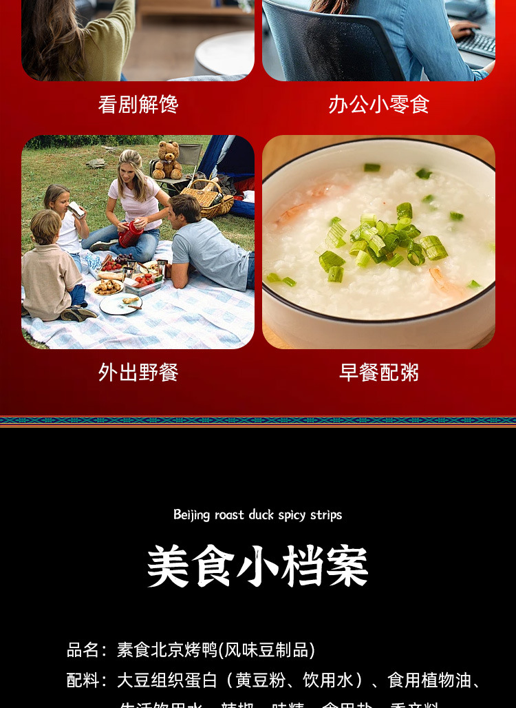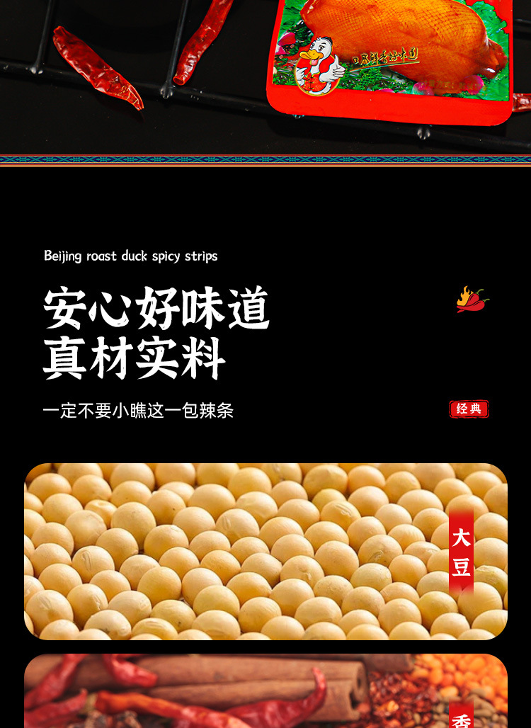 北京ローカー 北京ローストダック スパイシーストリップ スパイシーフレーク スパイシーベジタリアンミート スパイシードライビーンズ 子供の頃の懐かしいスナック カジュアルスナック