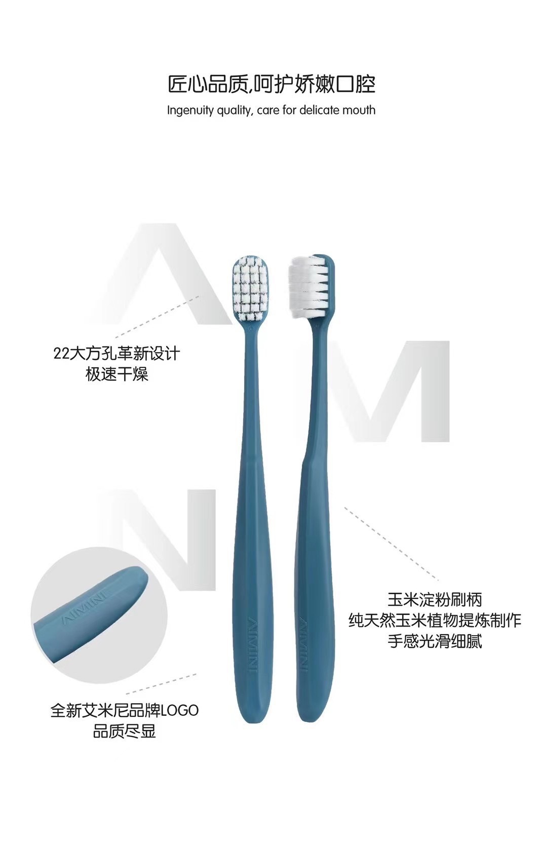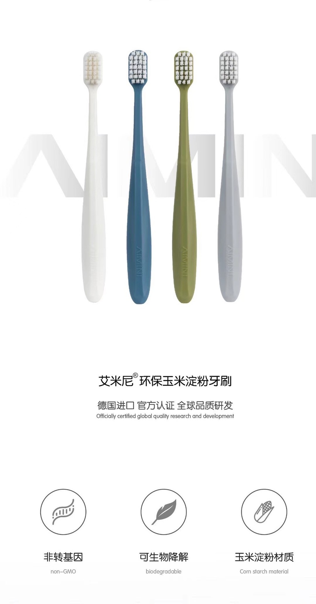 AIMINI艾米尼玉米淀粉A1牙刷细软毛清洁护理牙龈宽头成人情侣刷牙