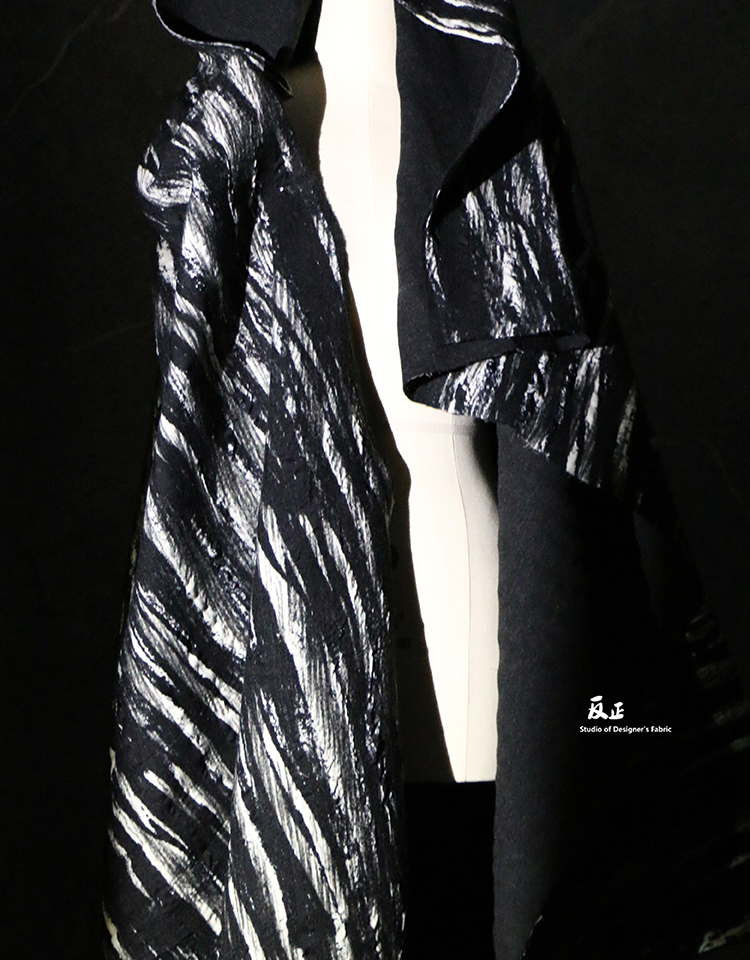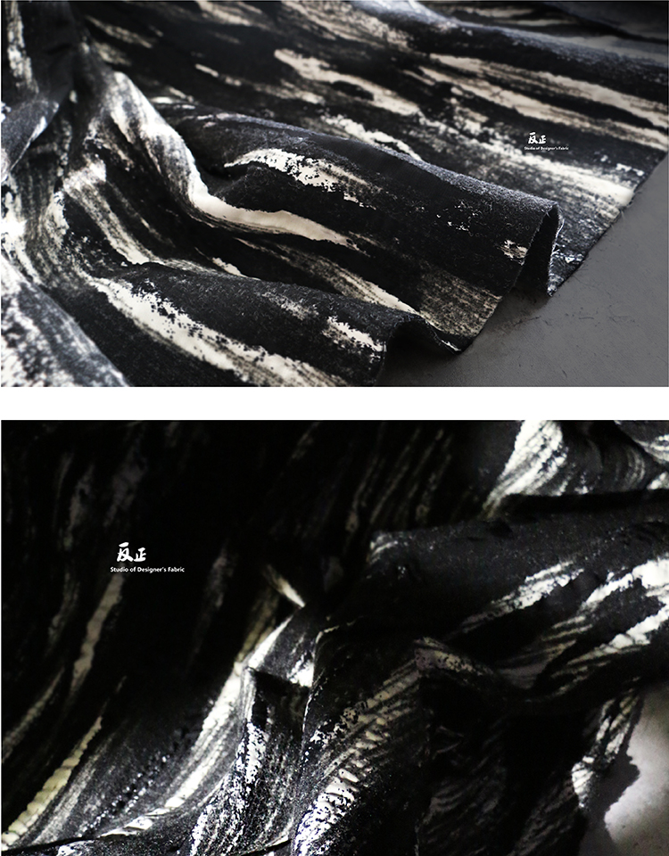 ダークリーフブラックとホワイトの痕跡複合刺繍立体発泡ハイエンドテクスチャコート diy 衣類デザイナー生地