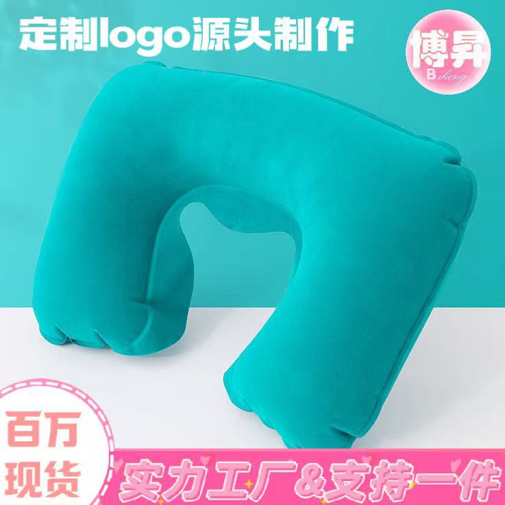 充气植绒旅行睡觉U型颈椎枕 便携折叠学生午休神器跨境航空飞机枕