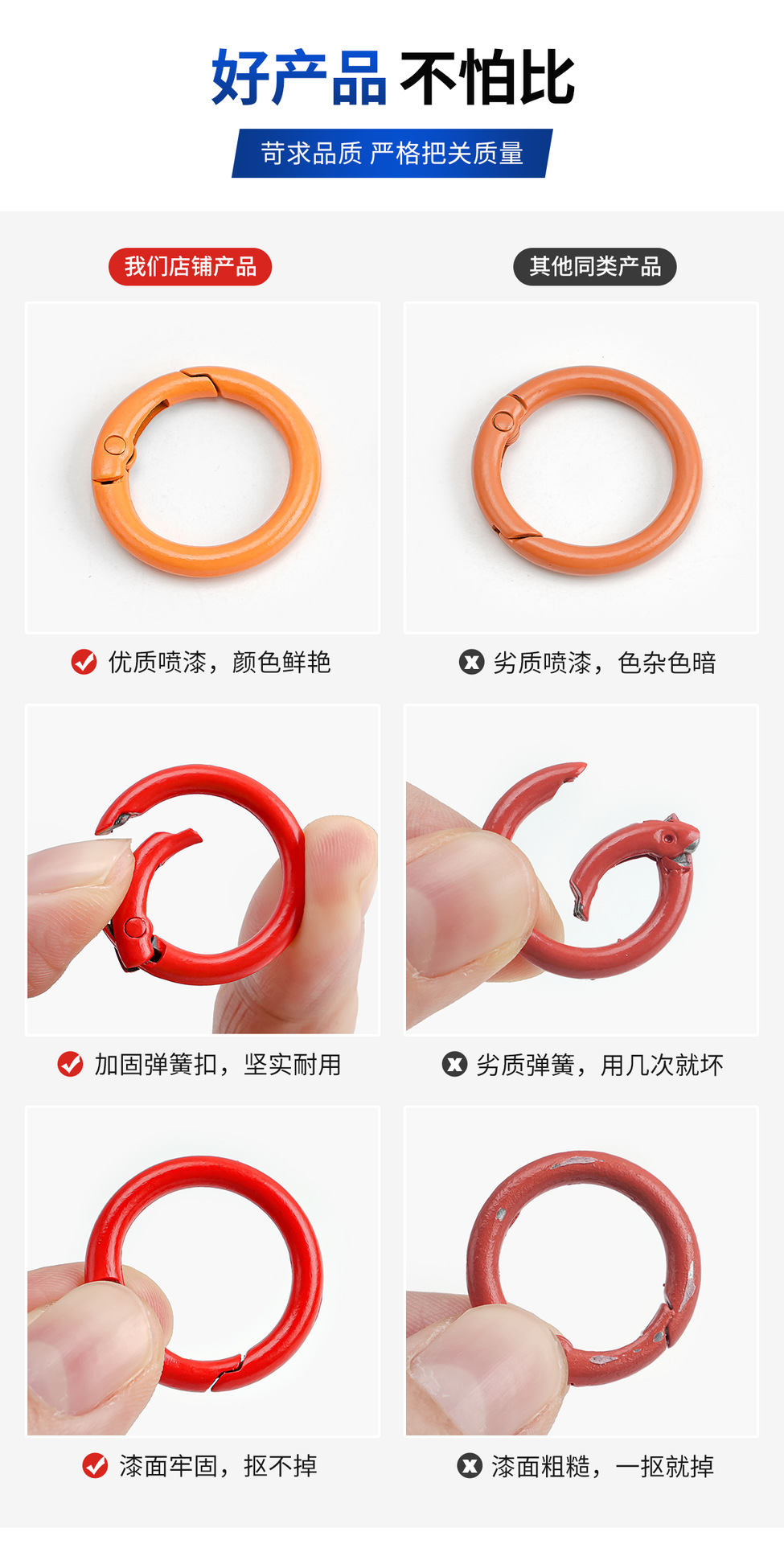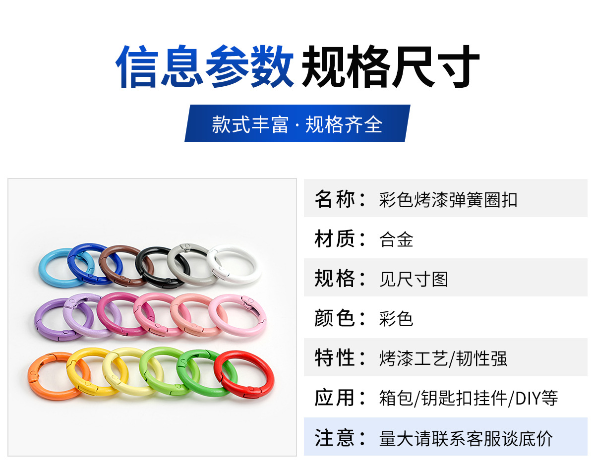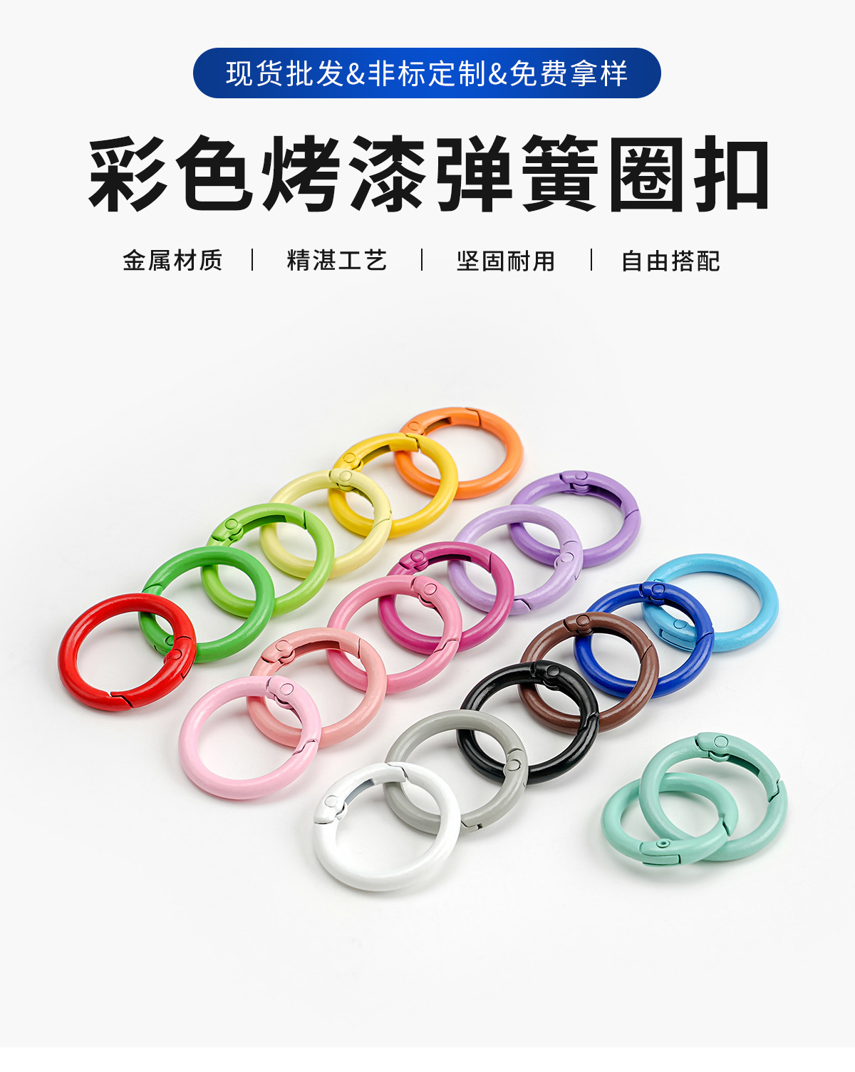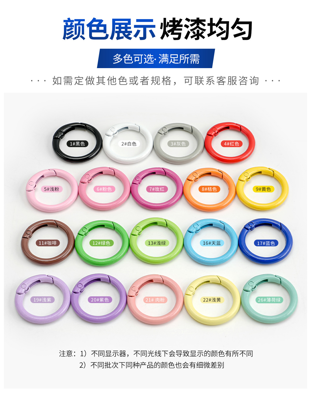 彩色烤漆弹簧扣锌合金钥匙扣圆形开口弹簧圈DIY手工饰品扣配件