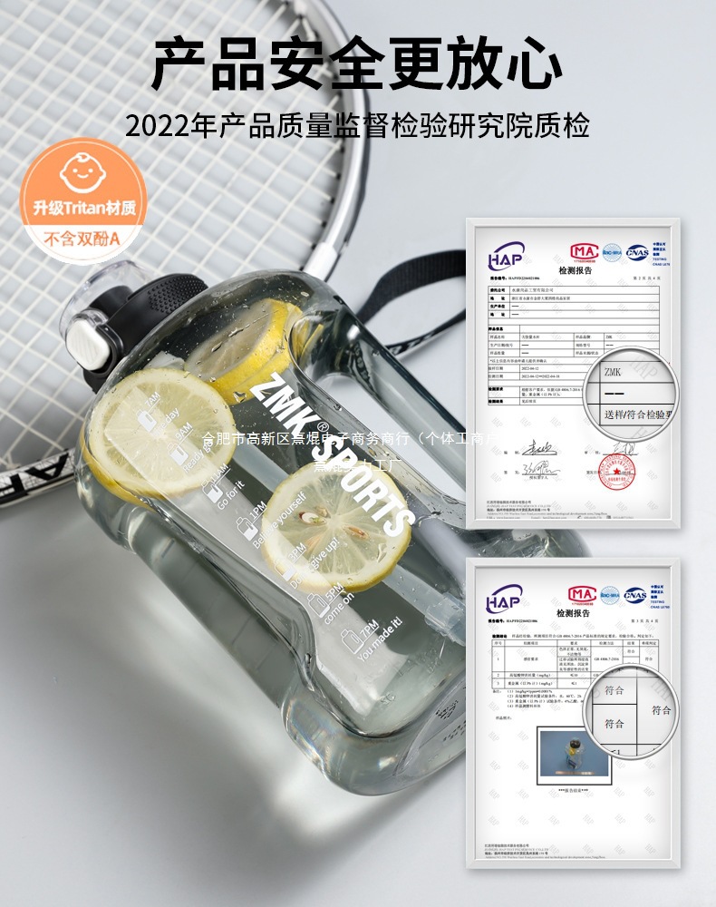 Tritanトントンバレル大容量カップ男性フィットネススポーツ水筒耐高温トンバレル大腹カップカスタム