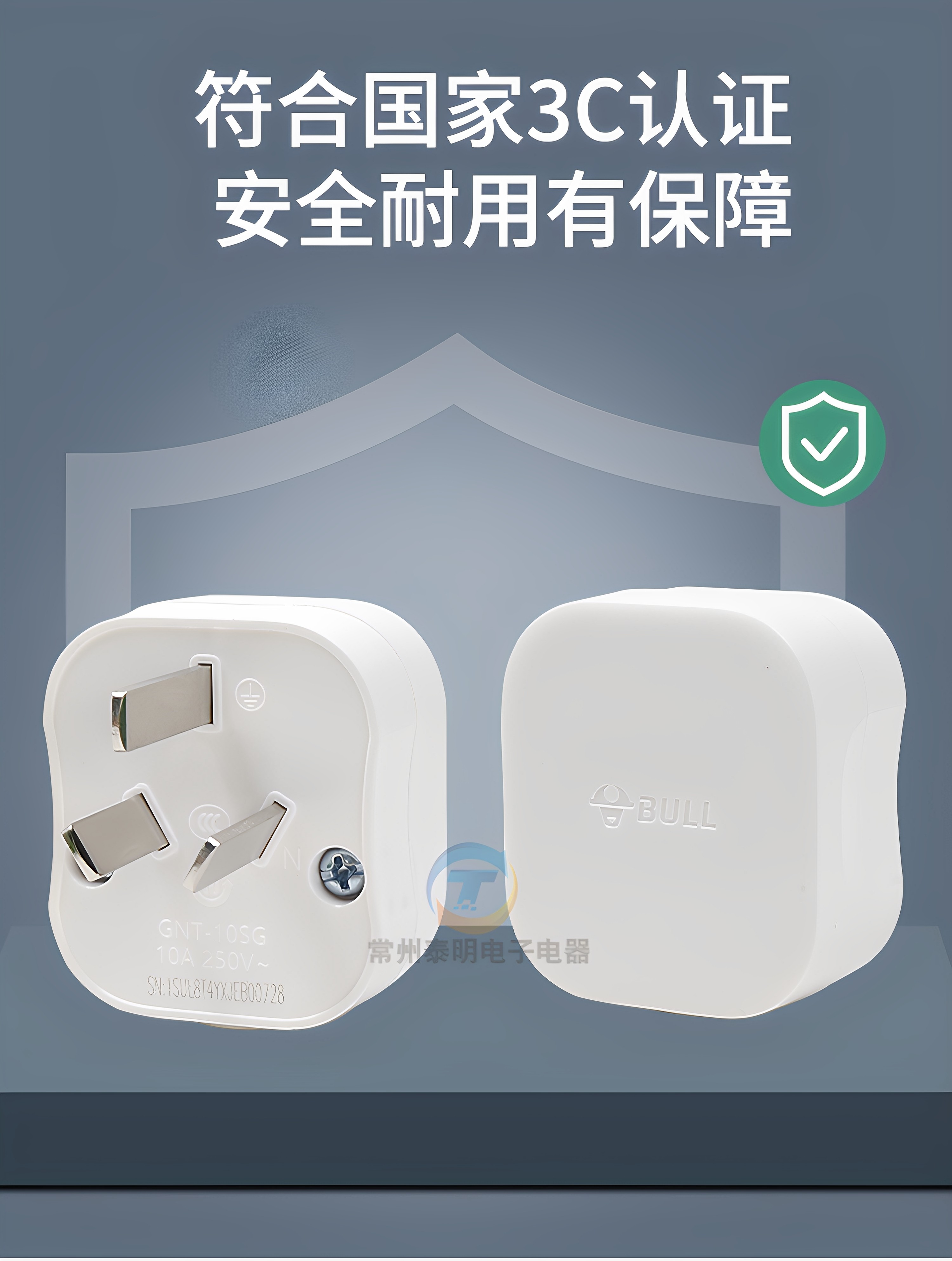 公牛插头10A三脚三角扁插头家用正品电源接线插头2500W瓦GNT-10SG