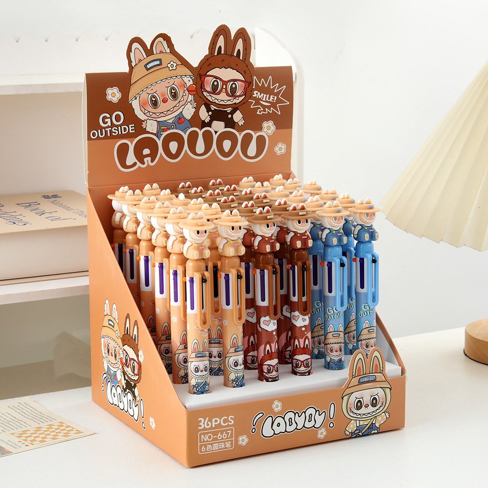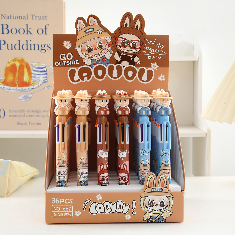 卡通六色圆珠笔 高颜值网红款手帐笔多功能彩笔学生学习文具用品