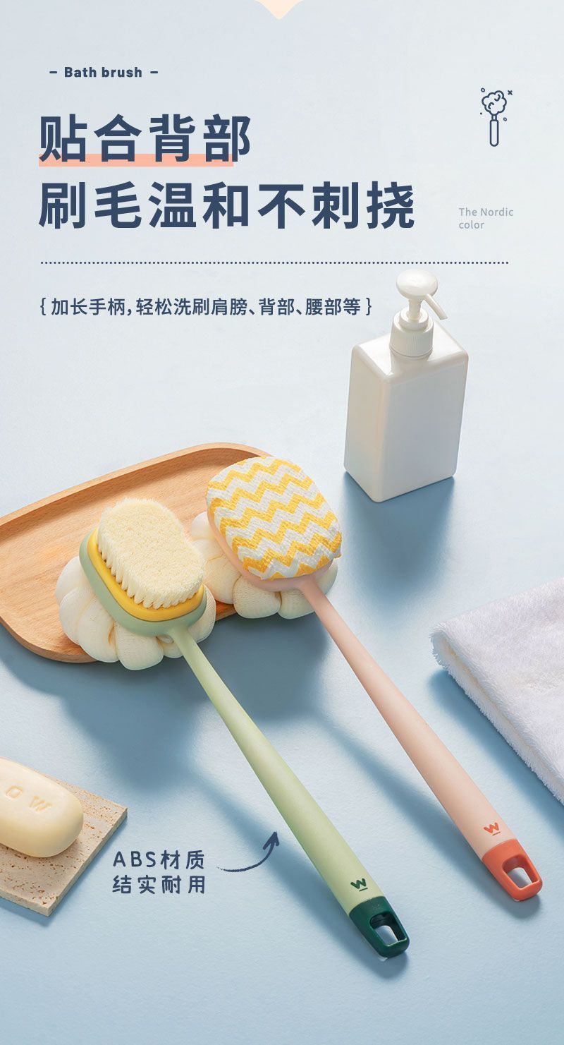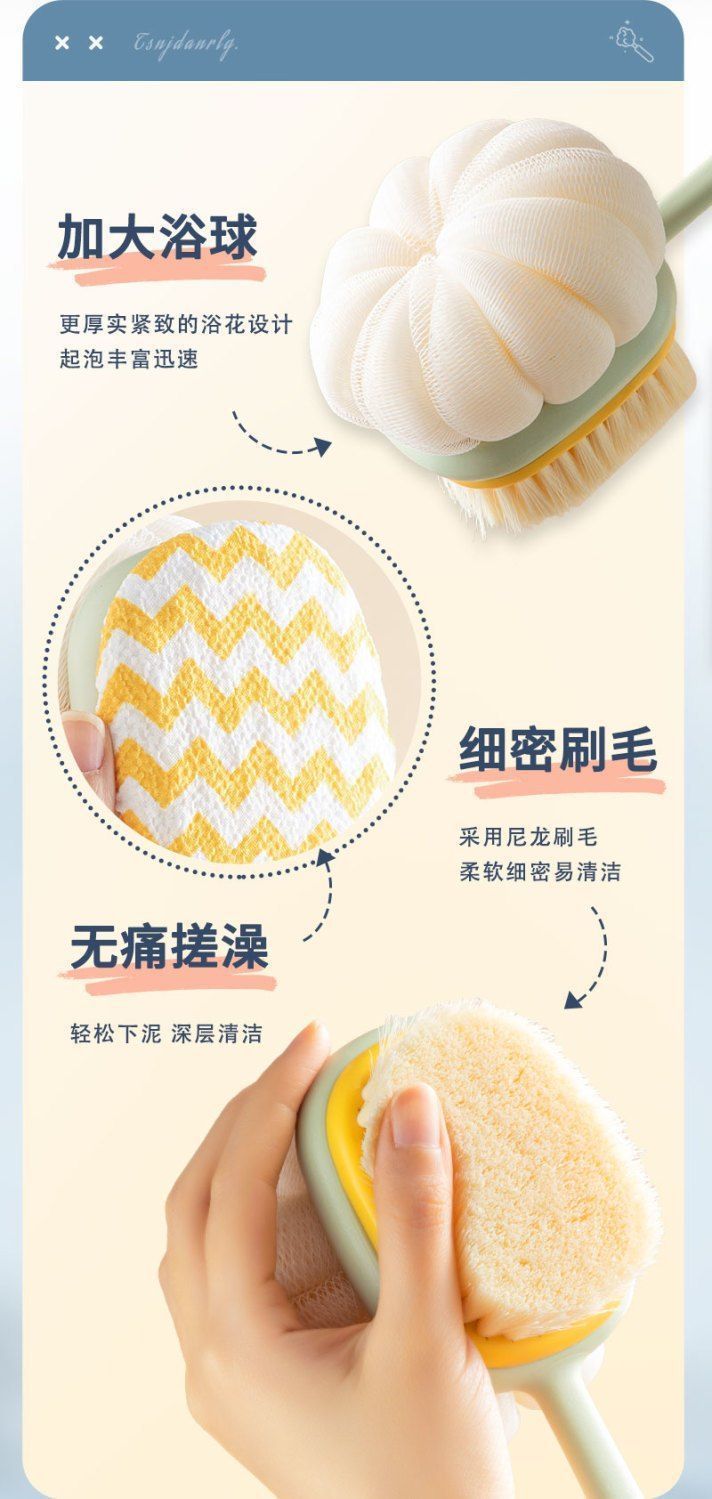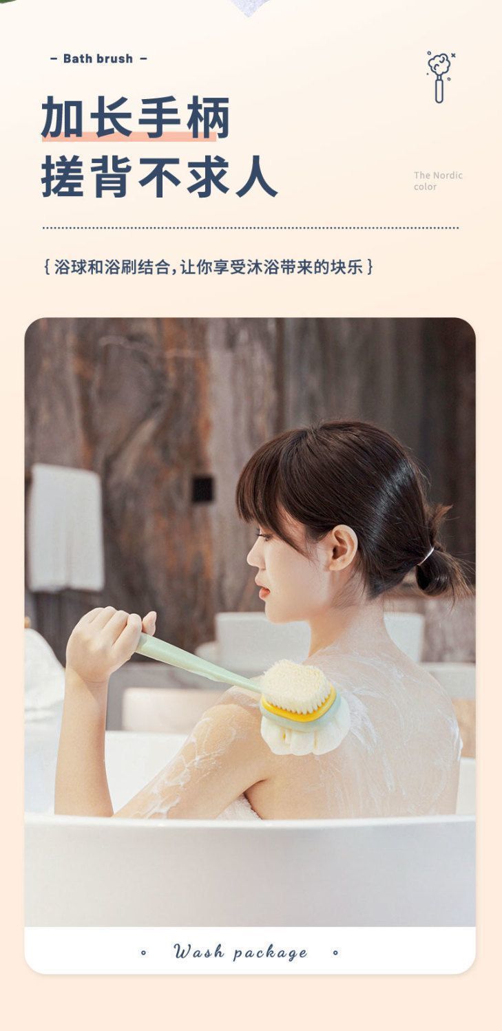 入浴用ブラシ、背中こすり、背中こすりツール、背中こすり、長柄、柔らか毛入浴用ブラシ、入浴用背中こすり、ボディブラシ